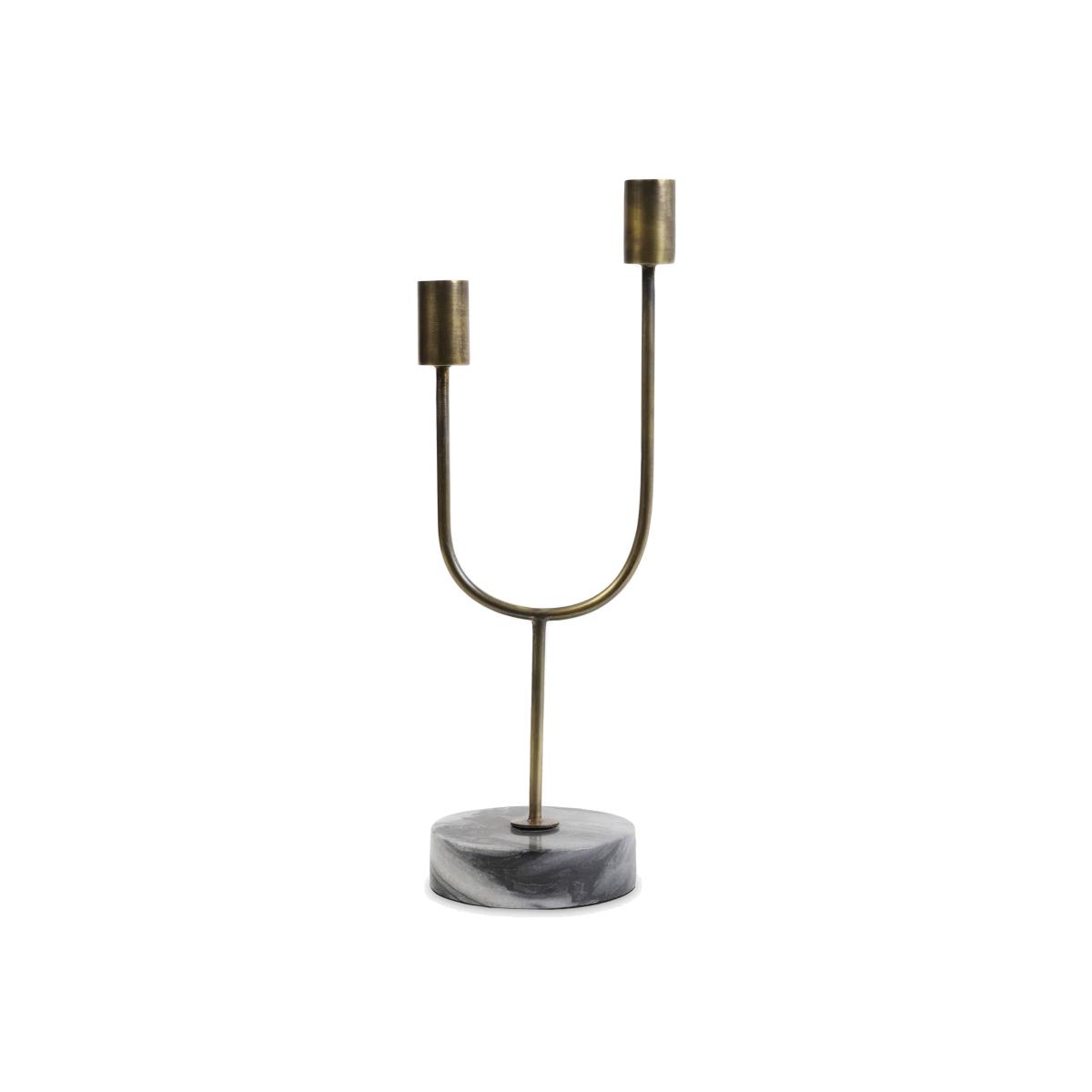 Add warmth and elegance to your home decor with our black marble Florike candle holder. A contemporary take on a traditional candelabra, it will elevate your living room mantle piece, side table, dining table, or outdoor patio with glamorous tones. Designed with gold-tone curved forged metal candle holders and a pink marble base, this modern candleholder makes an eye-catching statement. Transform your room's ambience and enjoy the calm glow of candlelight enhanced by Florik'e golden metal hues. Our Florike candlestick would give your house a sense of refinement with its gold finish and finely curved marble base shape.