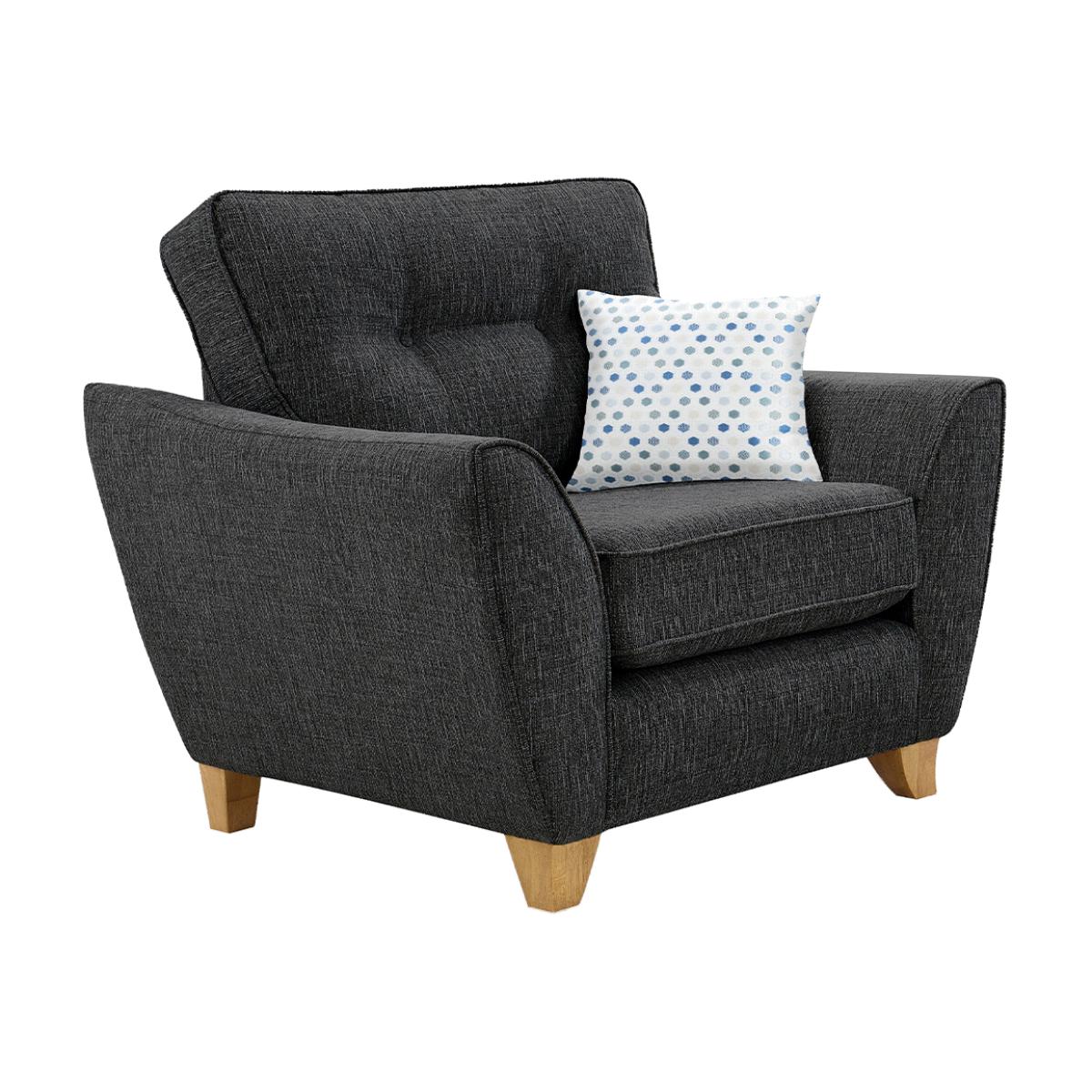 The Florin is a contemporary and comfortable fabric sofa collection, with modern design features such as curved teardrop arms, button detailing on the back cushions and tapered wooden feet.