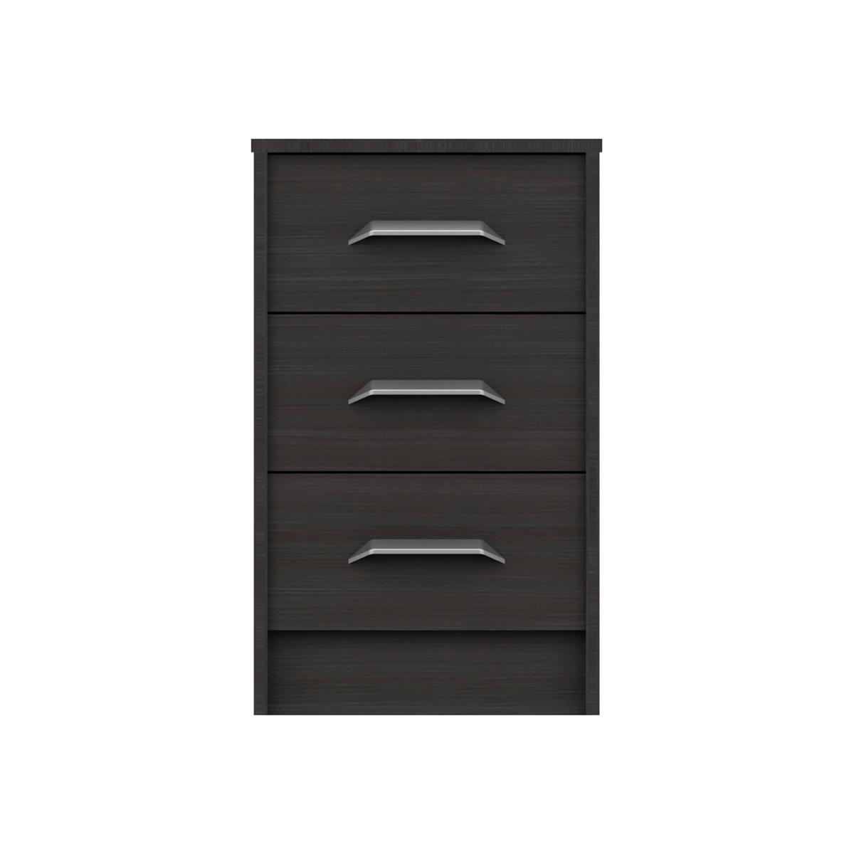 * Wood effect finish* Modern angled cup handles Clean lines and a modern colour palette, the Florine adds sophistication and contemporary style to any home. This piece is the perfect addition to any bedroom and keeps all your must have items nearby during the night. With 3 generously spacious drawers, you can easily tidy away cosmetics, books, and other bits and pieces for a tidy looking home. Please note, this item cannot be delivered to Jersey.
