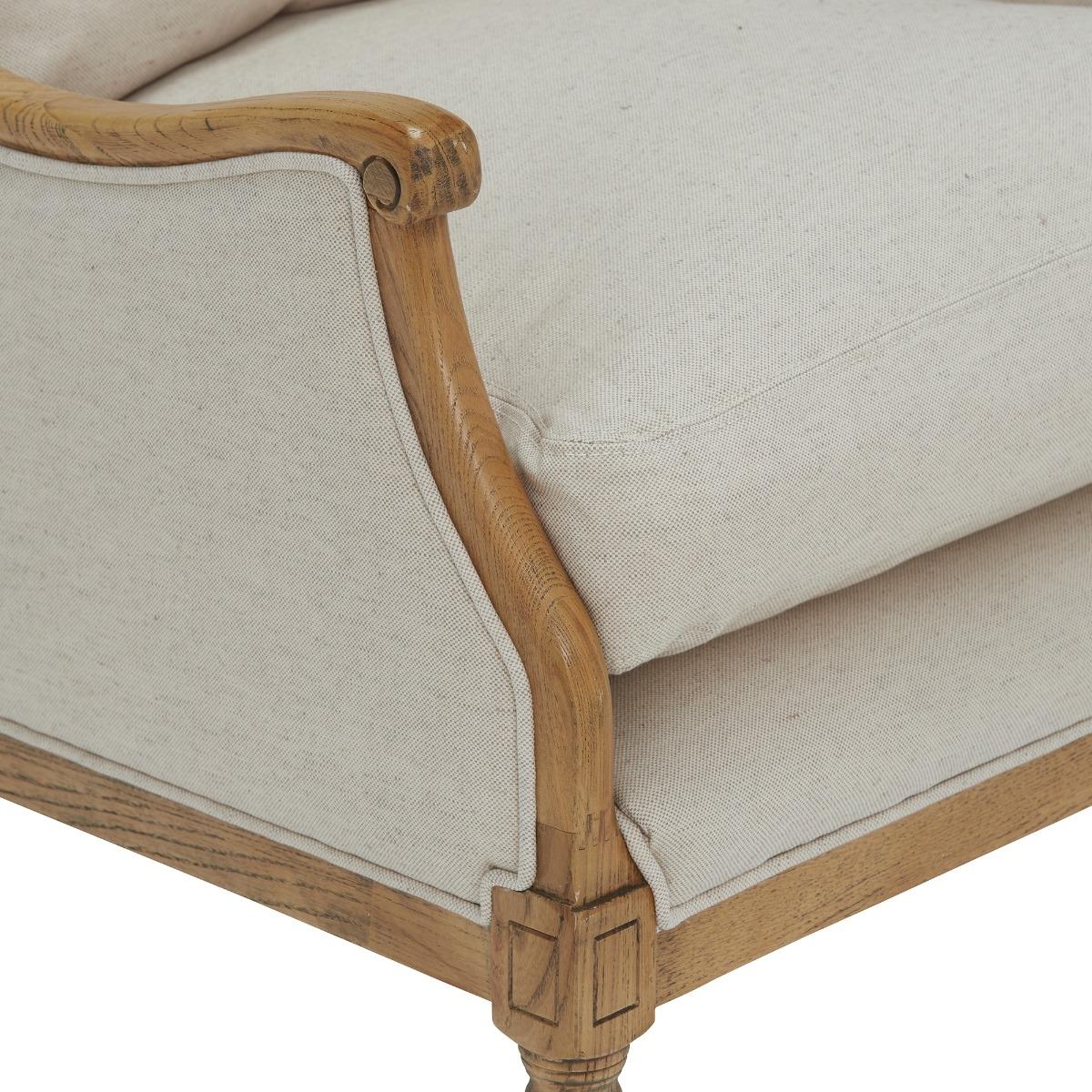 I’d recommend calling this simply the Florine chair. Its neutral linen upholstery and exposed oak frame make it a versatile choice for both contemporary and classic schemes. I love how the low, deep seat and loose back cushion strike a balance between comfort and structure, so it works equally well in a Scandi-inspired living room or a pared-back country sitting area. For styling, add a chunky wool throw in a soft grey or muted ochre to introduce texture, then flank the chair with a slimline side table and an arched floor lamp for a cosy reading nook. A single patterned cushion will lift the neutral palette without overwhelming the frame.