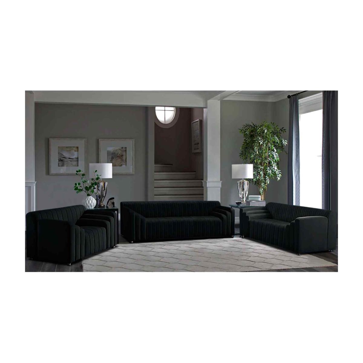 Florisa 3 Piece Flued Sofa Set in Velour Fabric - Black