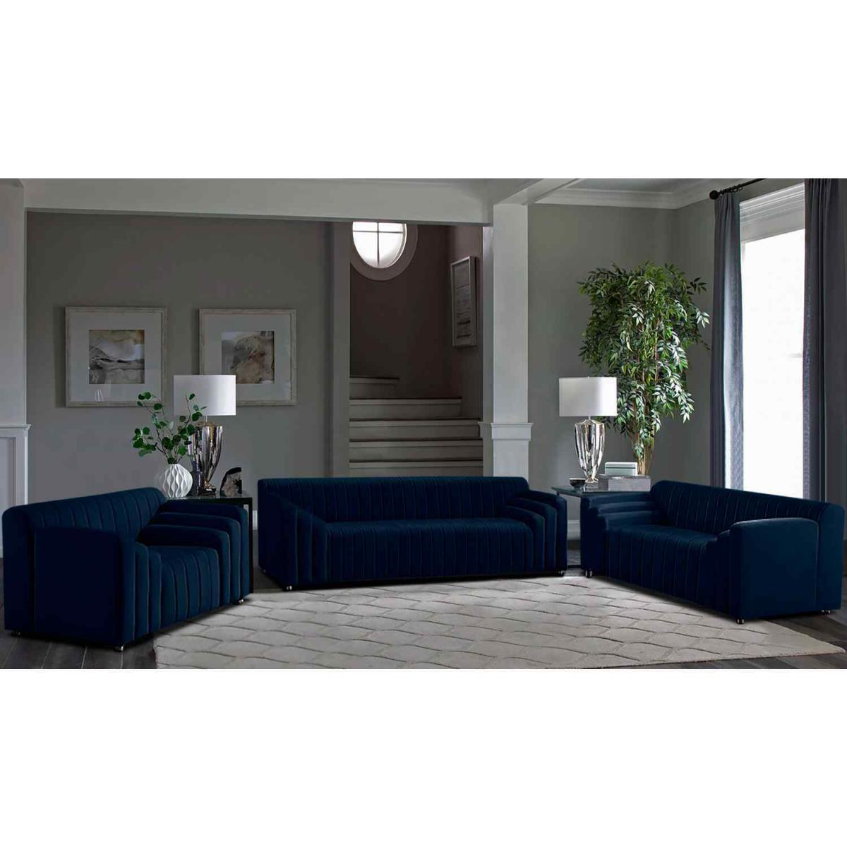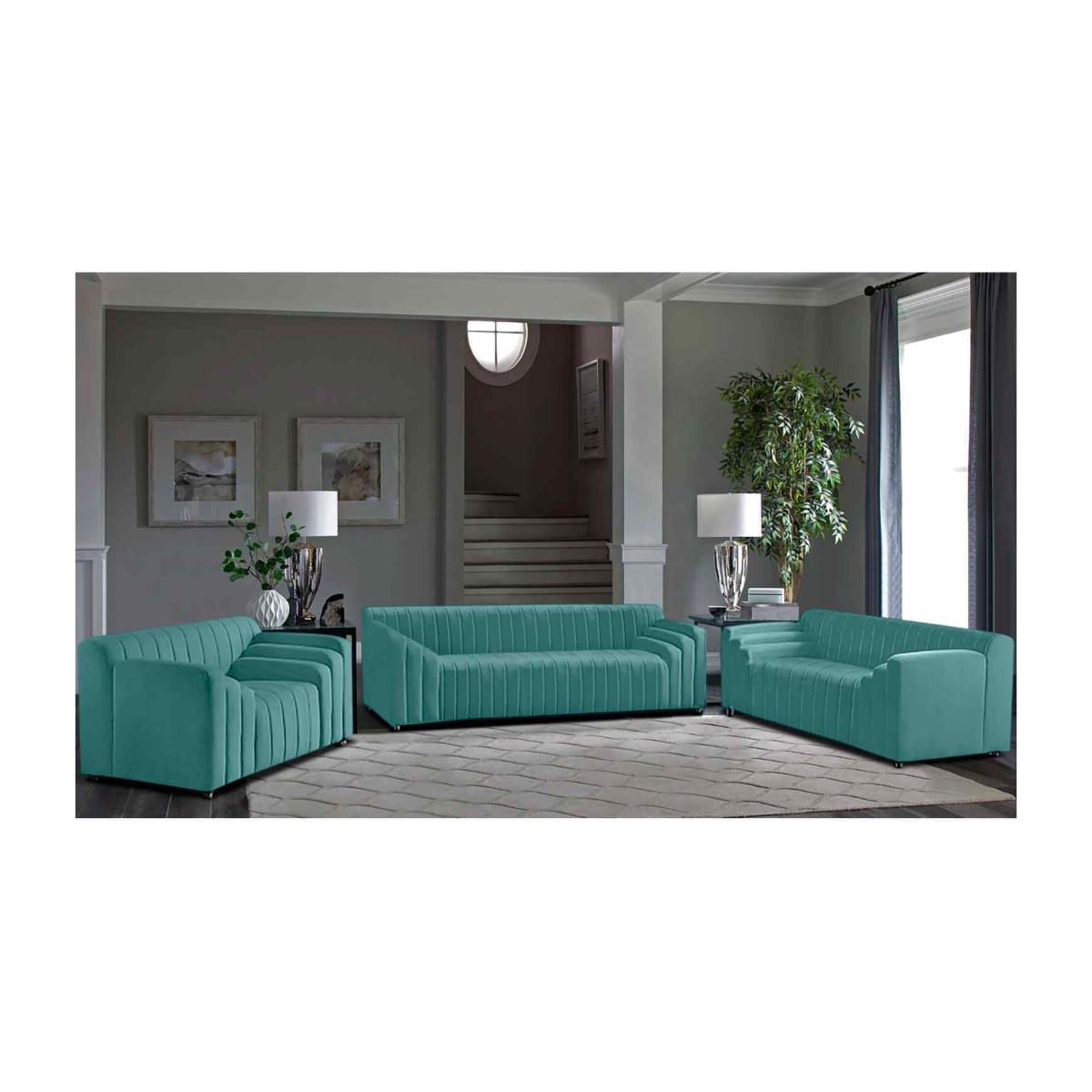 Florisa 3 Piece Flued Sofa Set in Velour Fabric - Turquoise