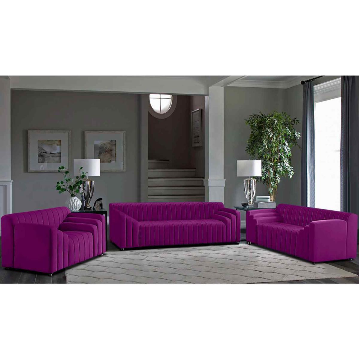 Another stunning fluted model, expertly made in the UK using the finest quality materials, this sofa set comes as a 3 seater, 2 seater and an armchair. Finished off in luxurious velour fabric. The perfect addition to any living room.