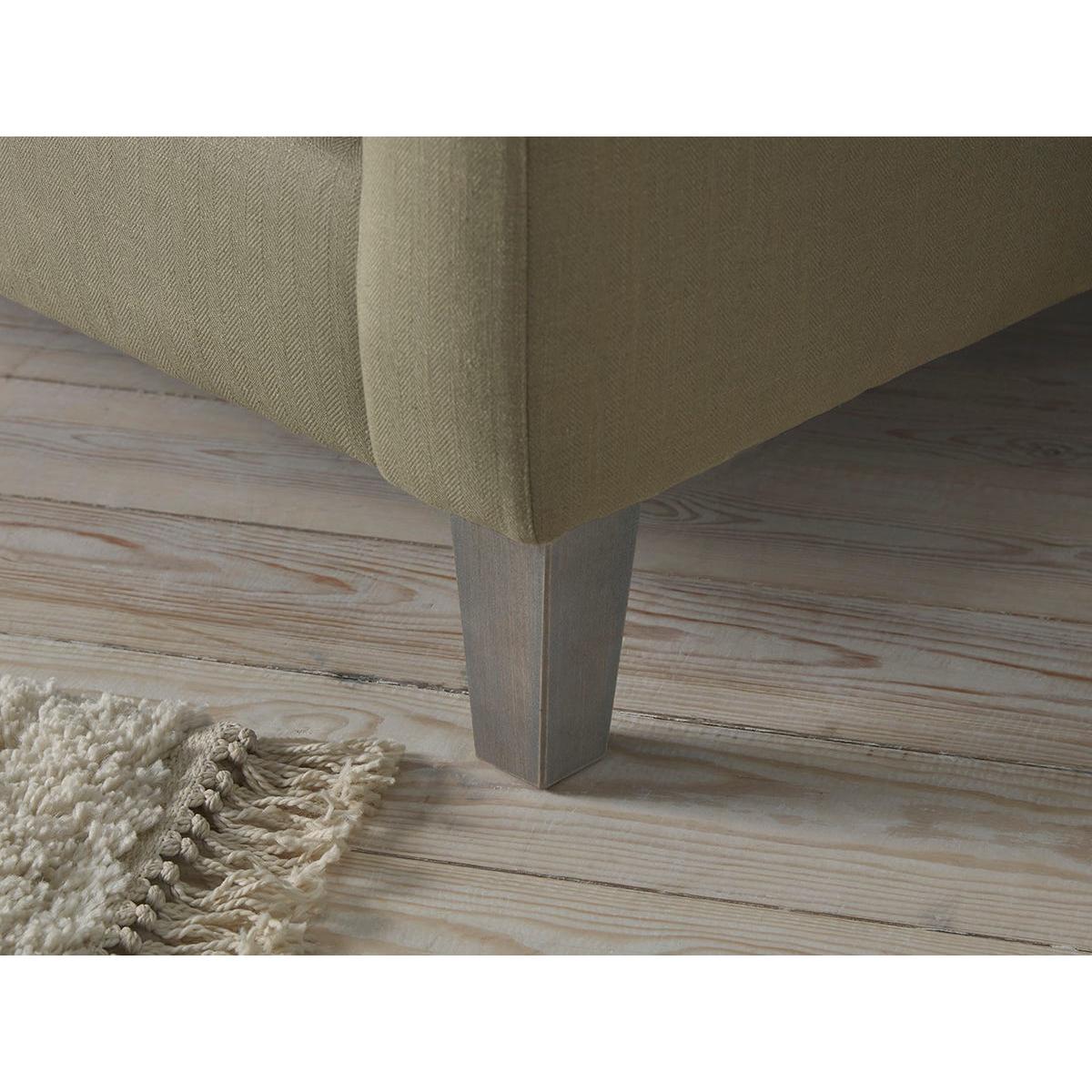 The handcrafted wooden frame of our Floro loveseat features slim sloping arms, a shallow back piled high with three scatter cushions and a seat cushion well filled with foam and natural feathers for superior support and minimal plumping. The seat stands on simple carved feet, with a polished limewashed oak finish. The Floro range also includes a two seater and three seater sofa and an ottoman. Pictured here in our Fern Herringbone material, our Floro collection can be upholstered in a choice of 34 distinctive shades and six fabrics to suit your style. Read our Upholstery FAQs View our full Upholstery Terms and Conditions
