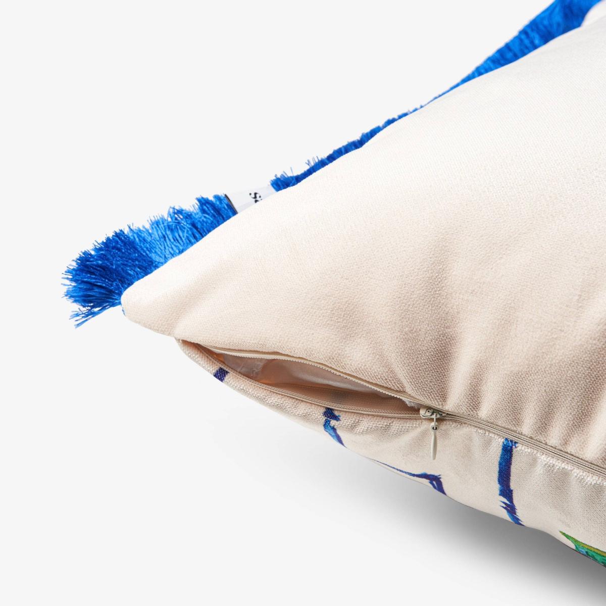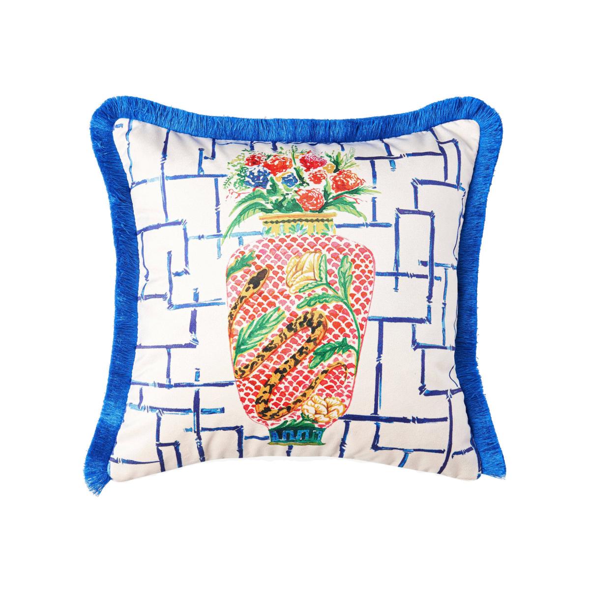 Bring your home to life with the floral splendour of our Florun cushion cover. This beautiful pillow captivates with its bold, colourful bouquet displayed in an ornate vase. Designed in a hand-painted style, it intertwines artistic brush strokes with a hint of midcentury geometric pattern. Give your sofa or bed a refreshing boost with this sumptuous, nature-inspired cushion cover, and make every day feel like spring.