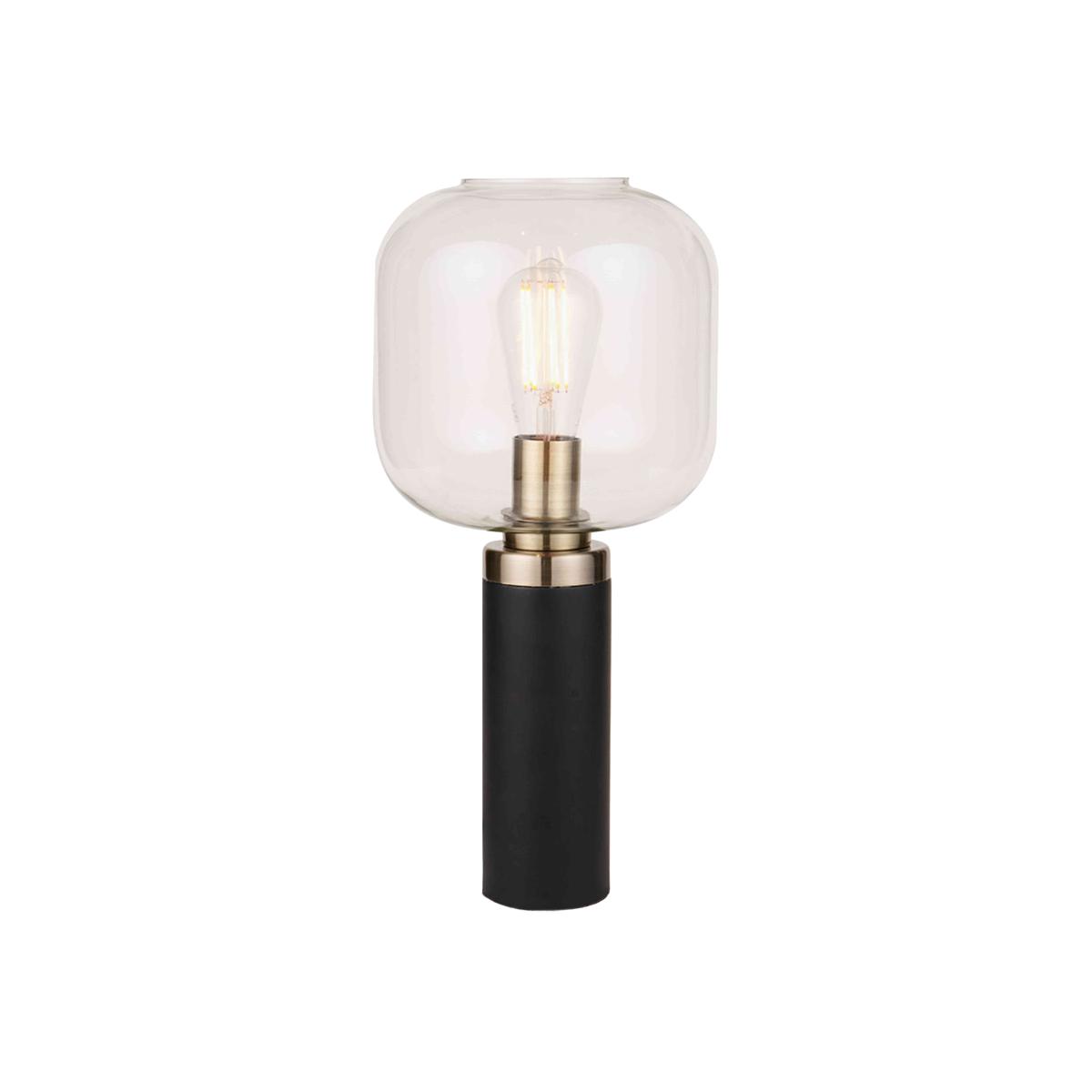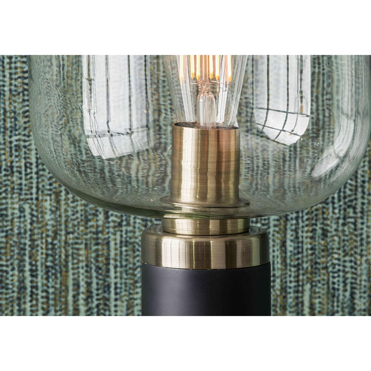 Our Flory table lamp brings together a trio of well-crafted industrial finishes – black metal, brass and glass – in the most elegant and stylish way. Why you'll love it Contemporary metal table lamp is so on-trend. The smooth cylindrical black iron base has brass accents. Comes complete with a handmade glass shade. Suits all kinds of spaces from industrial to classic. This table lamp is part of the Furniture Village lighting collection. What you need to know Iron base, glass shade. Supplied with 184 cm cable. Requires 1 x E27/ES max. 10-12 W LED bulb (not included). Please do not exceed this wattage. To clean, wipe gently with a clean soft cloth. Be sure to disconnect from the power outlet before cleaning. Dimensions including shade Height: 44 cm (17 in). Diameter: 21 cm (8 in).