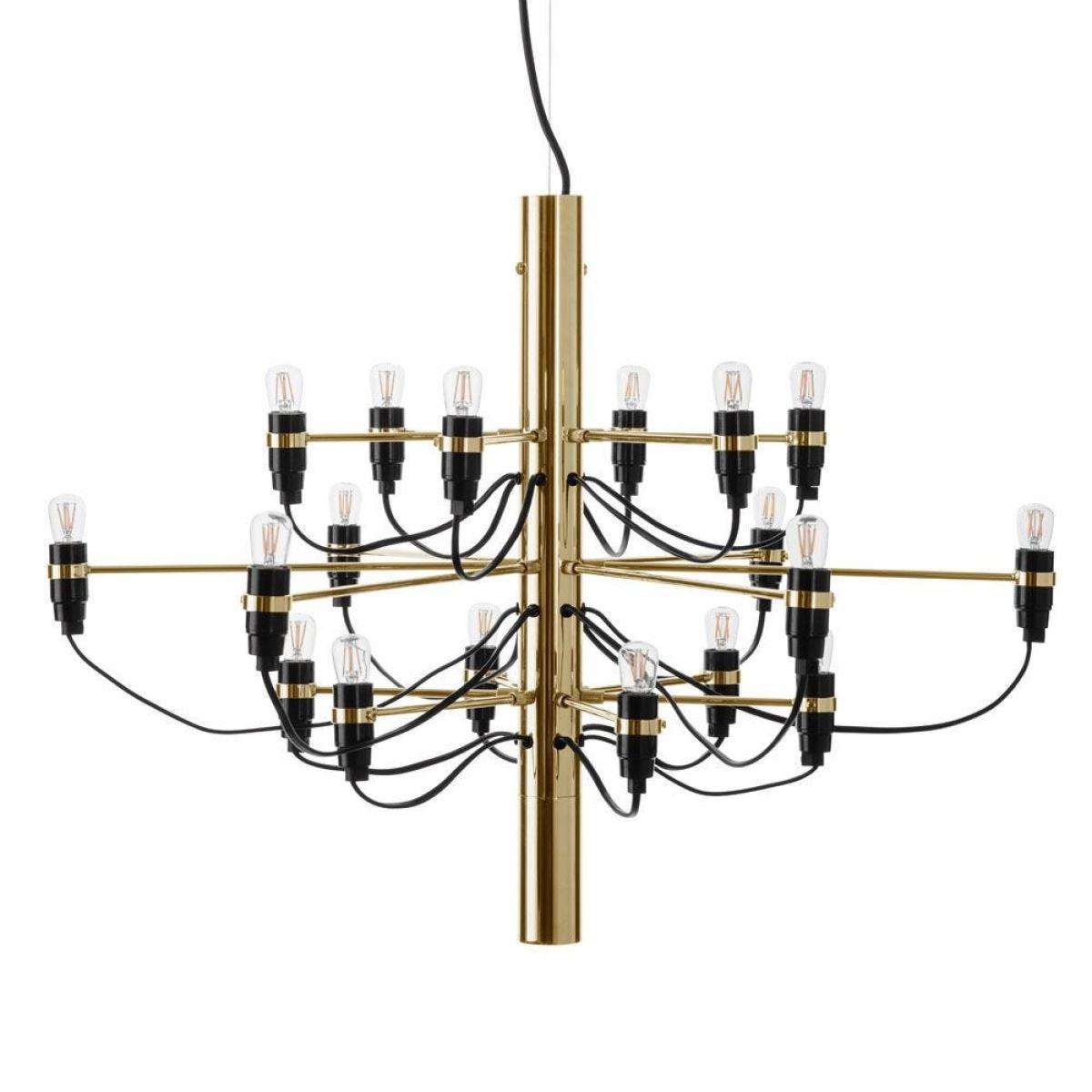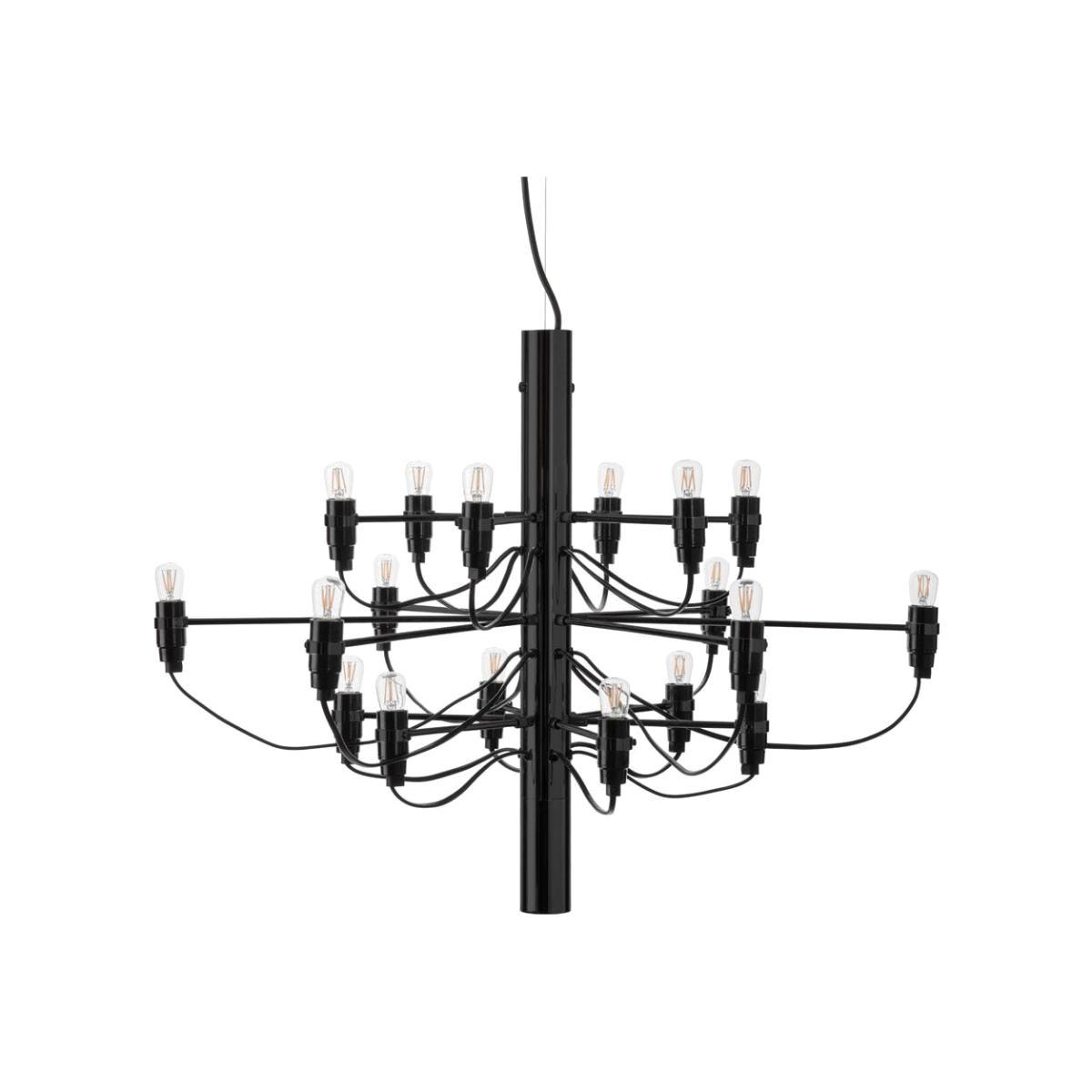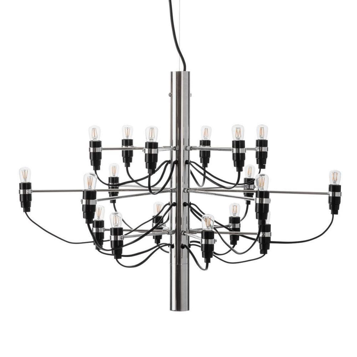 Gino Sarfatti designed the 2097/18 Chandelier for Flos in 1958 as a modern interpretation of the traditional chandelier. The chandelier celebrates the inner workings of lighting design and puts the frosted bulbs and cables centre stage. With 18 arms, this edition is smaller than the original, making it perfect for smaller spaces.