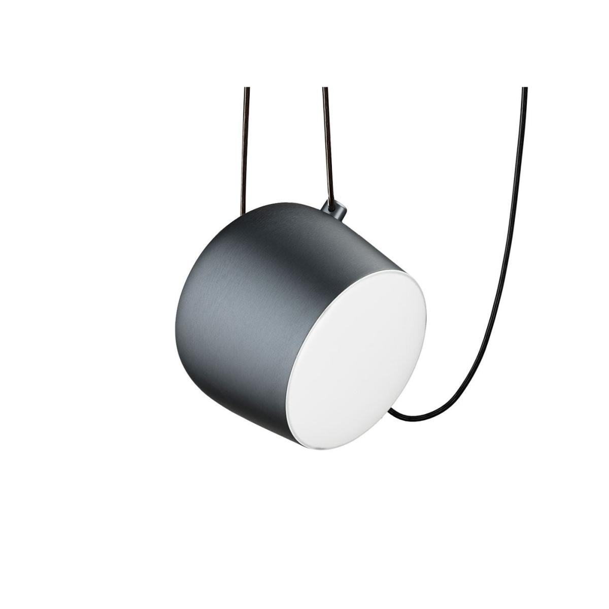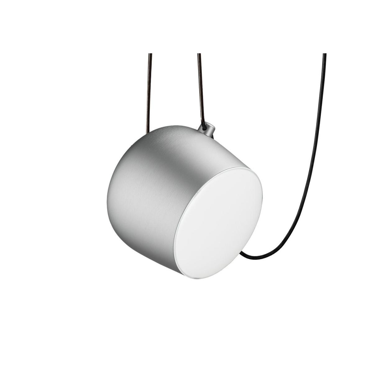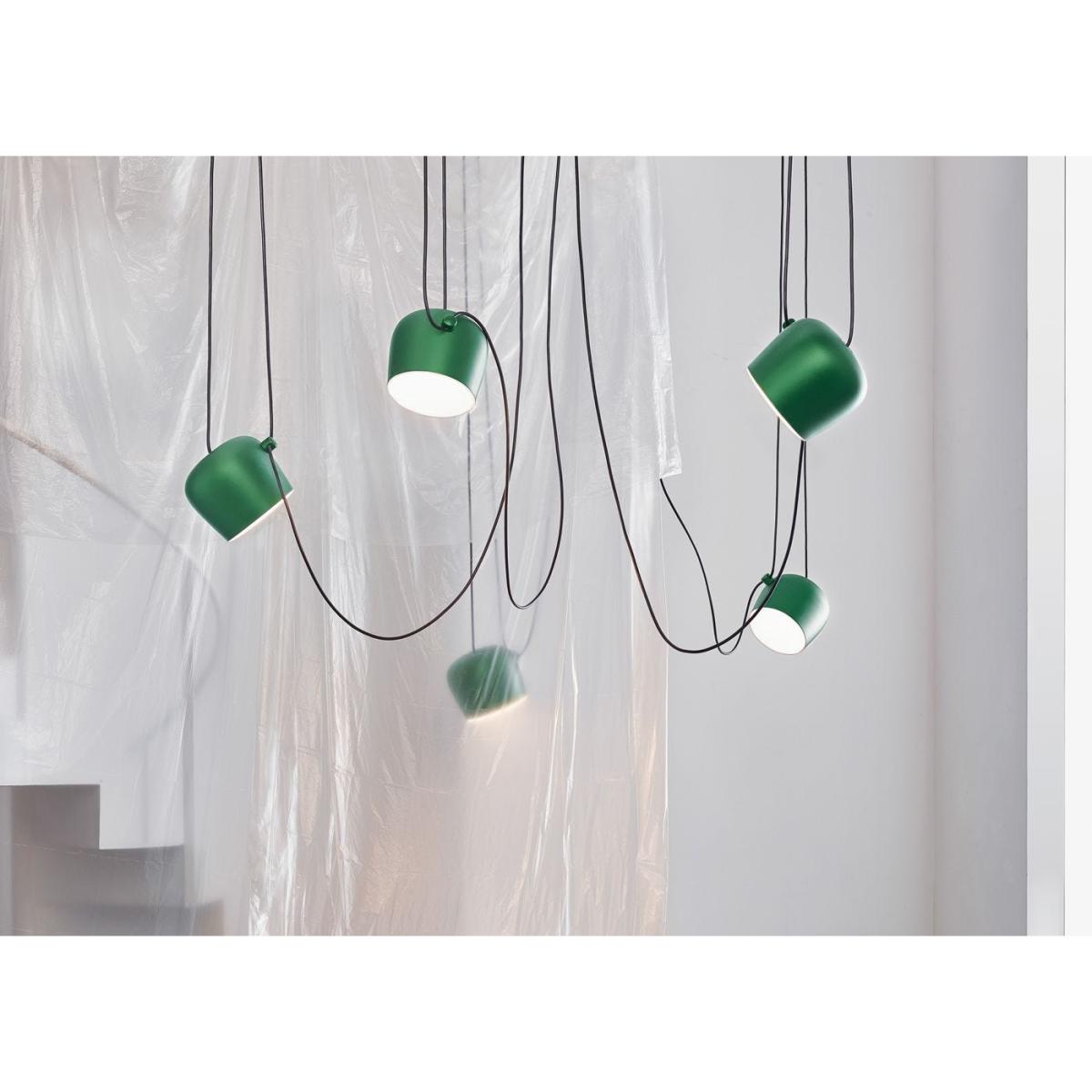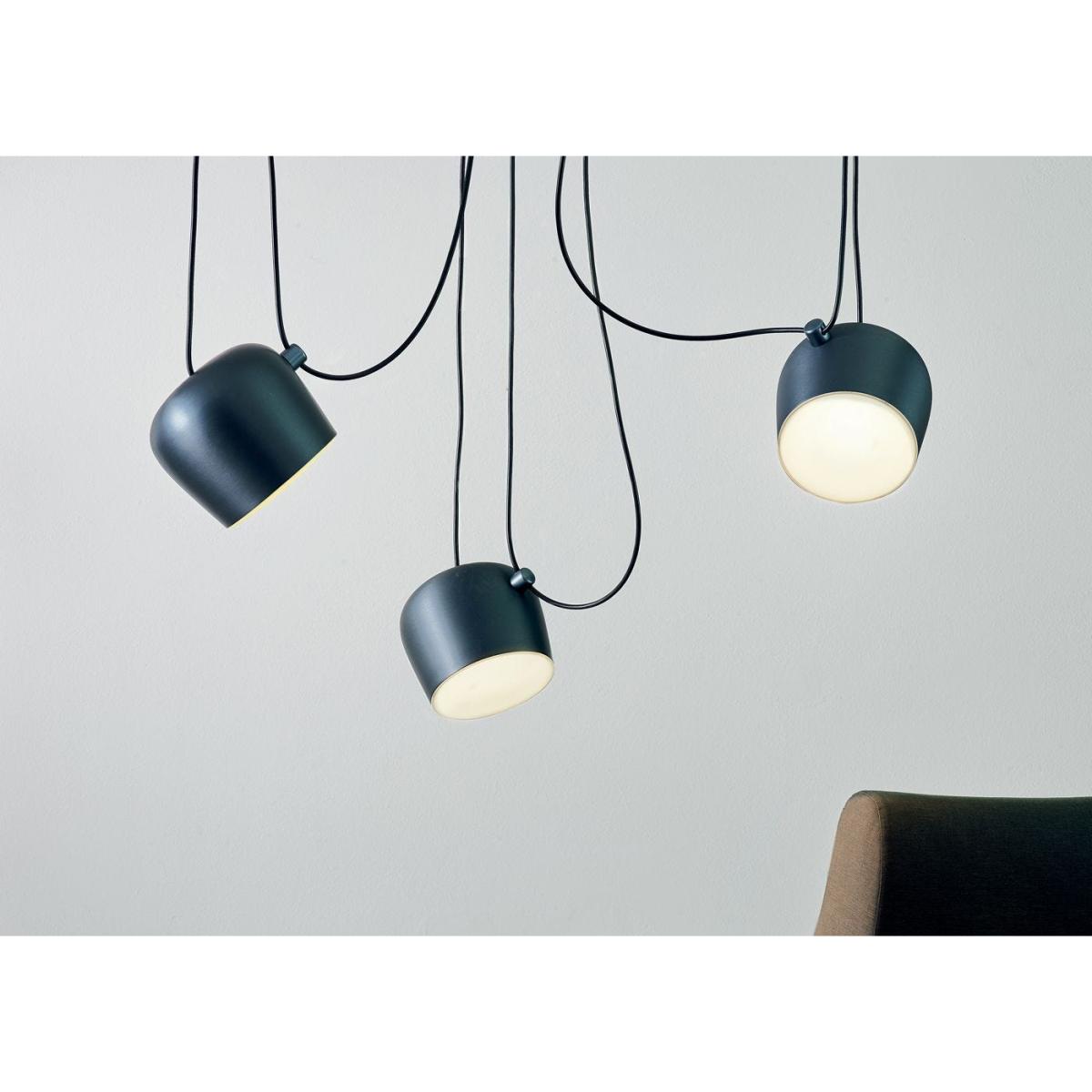 Designed by Ronan and Erwan Bouroullec, the large Aim pendant is a suspended drop light with integrated LED technology and an orientable head. Aim hangs from the ceiling like a plant, with three metres of cable and an anodized aluminium head that can be angled in any direction. Available in five colours, Aim can be adapted to complement any design scheme and adjusted to satisfy all lighting needs. You can hang up to five pendants from the multiple ceiling rose, creating a dynamic cluster of light.