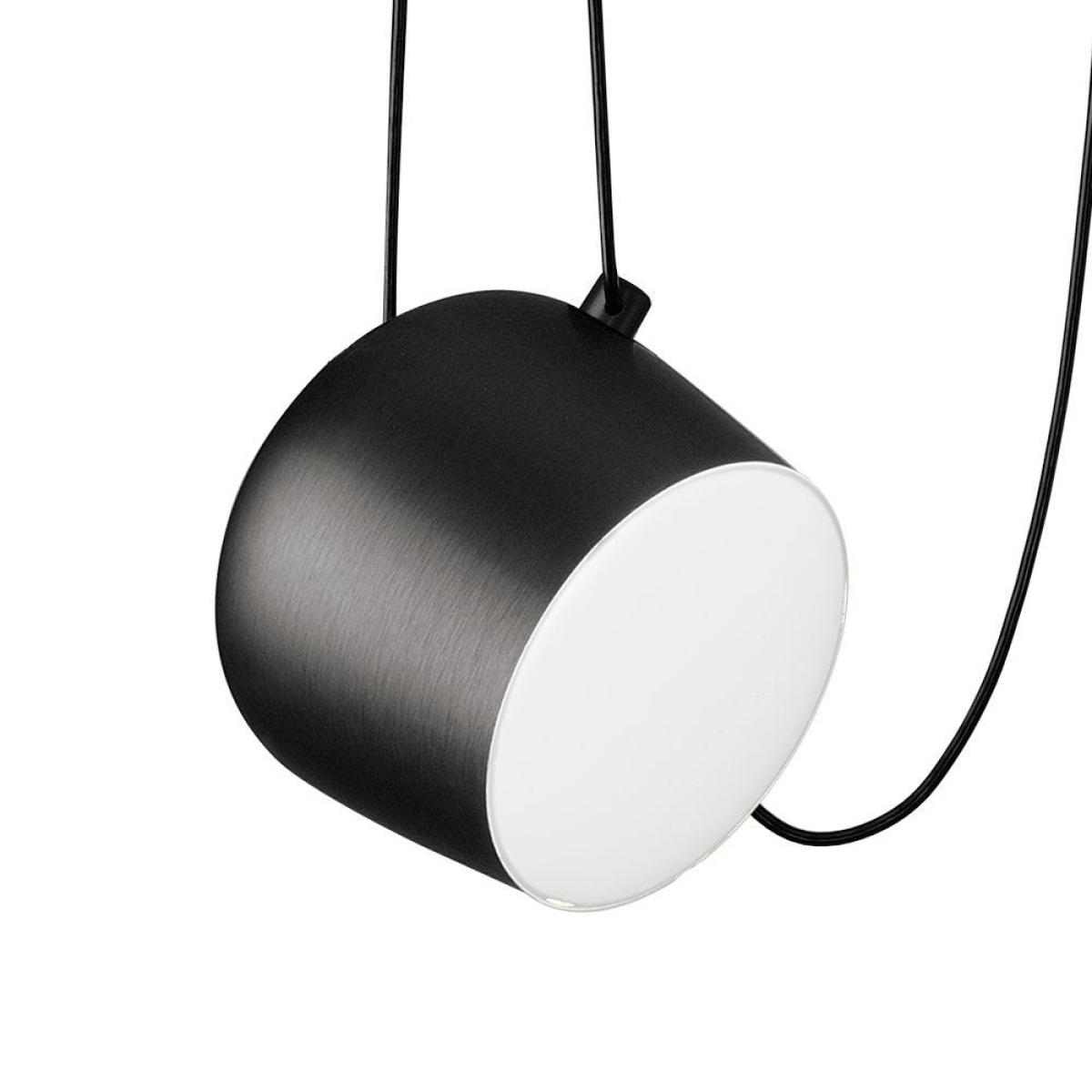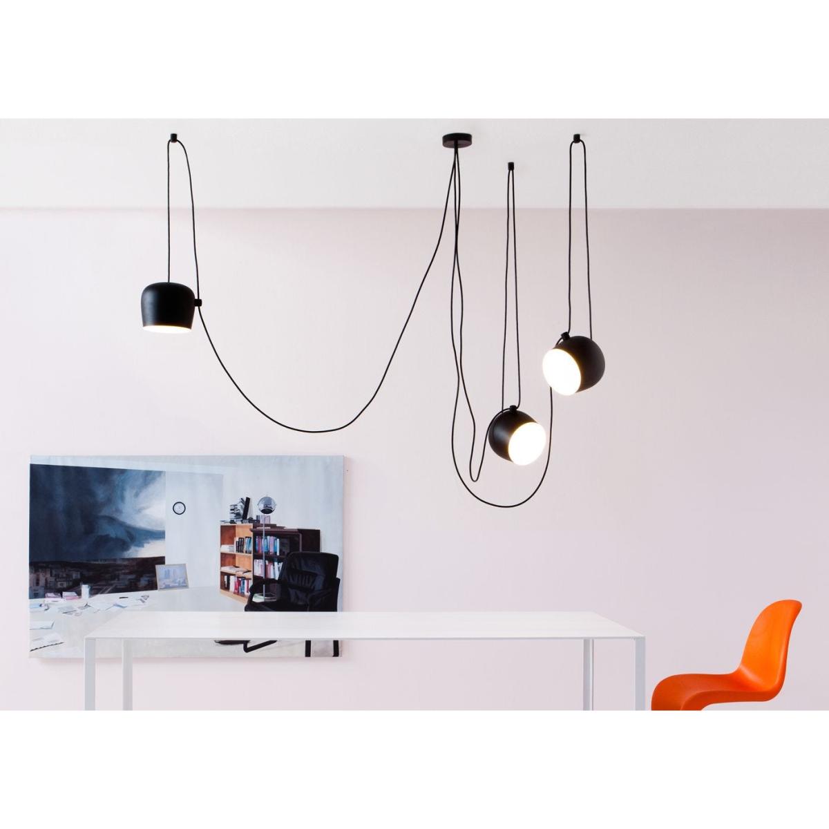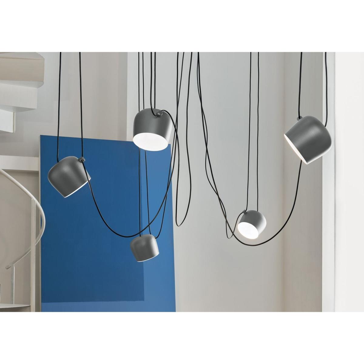 Designed by Ronan and Erwan Bouroullec, the large Aim pendant is a suspended drop light with integrated LED technology and an orientable head. Aim hangs from the ceiling like a plant, with three metres of cable and an anodized aluminium head that can be angled in any direction. Available in five colours, Aim can be adapted to complement any design scheme and adjusted to satisfy all lighting needs. You can hang up to five pendants from the multiple ceiling rose, creating a dynamic cluster of light.