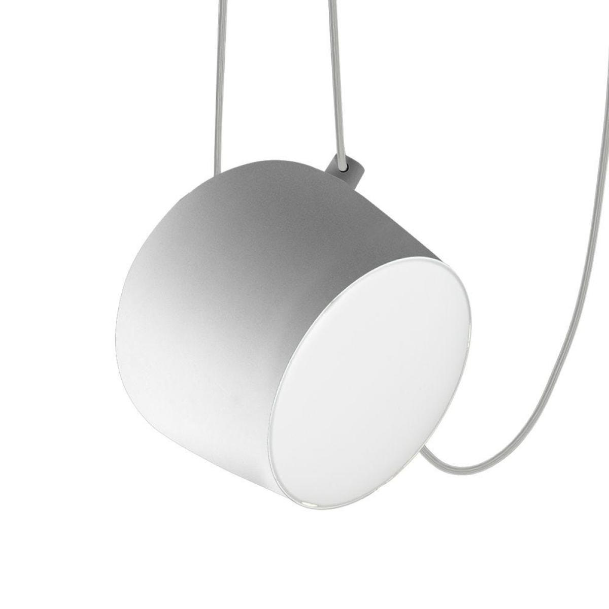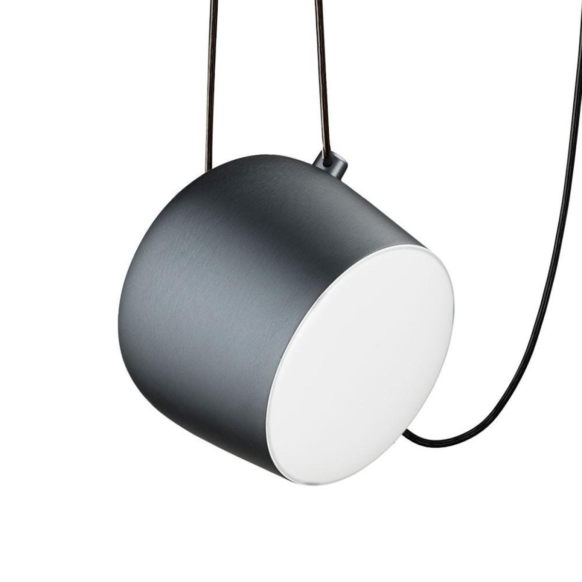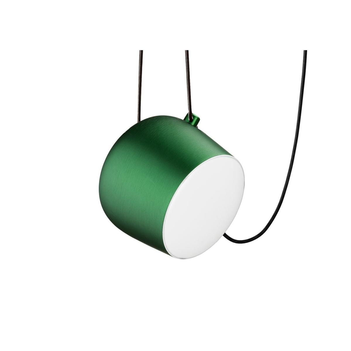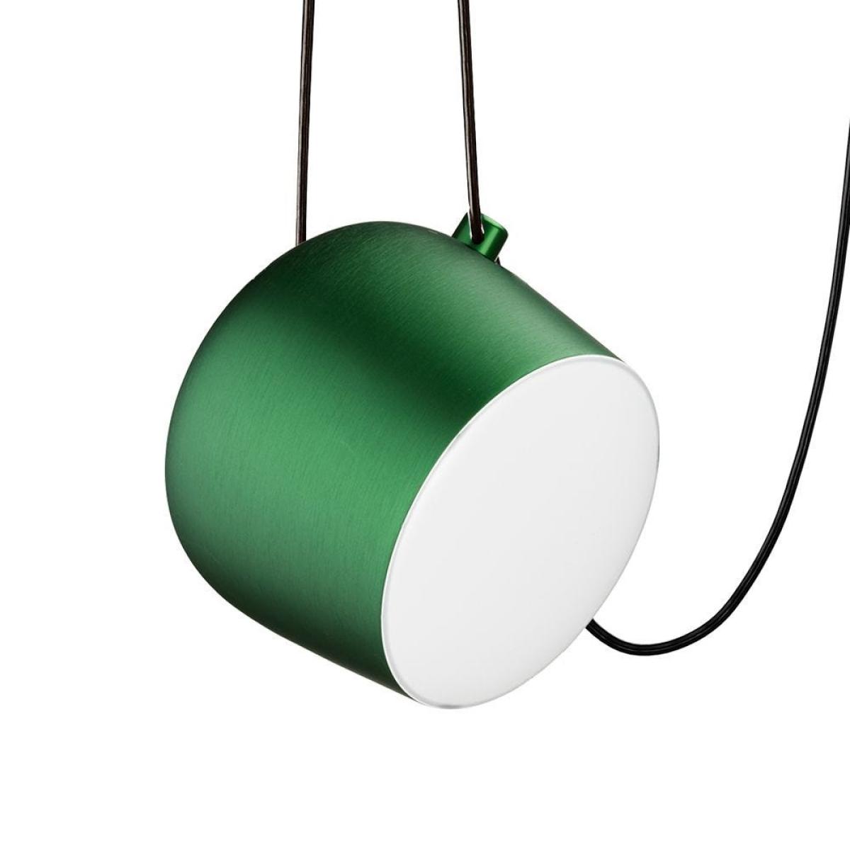 Designed by Ronan and Erwan Bouroullec, the large Aim pendant is a suspended drop light with integrated LED technology and an orientable head. Aim hangs from the ceiling like a plant, with three metres of cable and an anodized aluminium head that can be angled in any direction. Available in five colours, Aim can be adapted to complement any design scheme and adjusted to satisfy all lighting needs. You can hang up to five pendants from the multiple ceiling rose, creating a dynamic cluster of light.