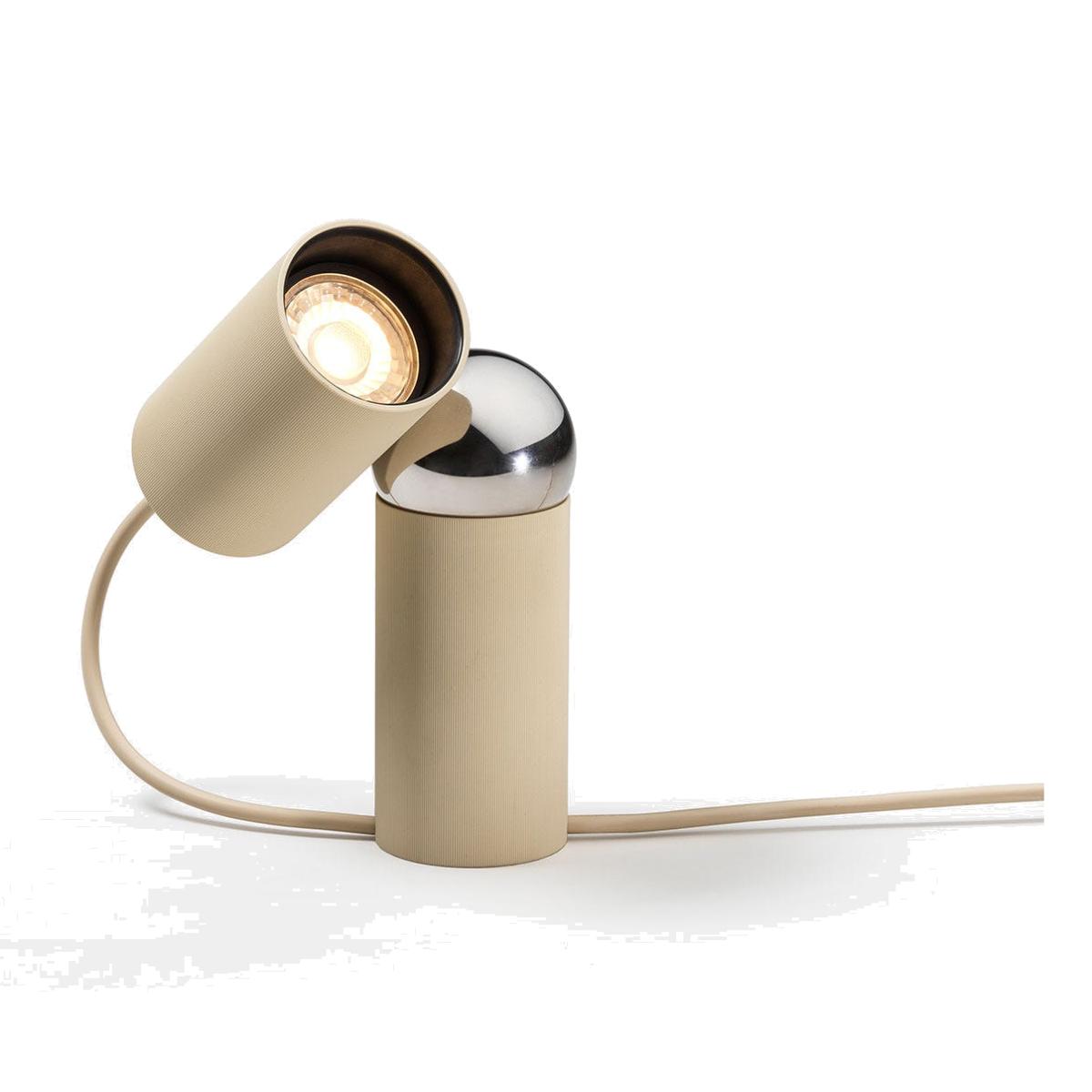 I love this little lamp for its sleek, minimalist design and versatile neutral tone, making it a great addition to modern and contemporary interiors. It works particularly well in spaces that benefit from subtly focused task lighting, such as beside a reading nook or on a side table in a living room. Its understated aesthetic lends itself to a polished, understated look but can also be combined with softer textiles or metallic accents for more eclectic or luxe schemes. Practical styling tips include pairing it with textured fabrics or placing it on a bedside table or desk for a functional yet stylish touch. Its simple form keeps spaces feeling uncluttered while adding a touch of refined practicality.