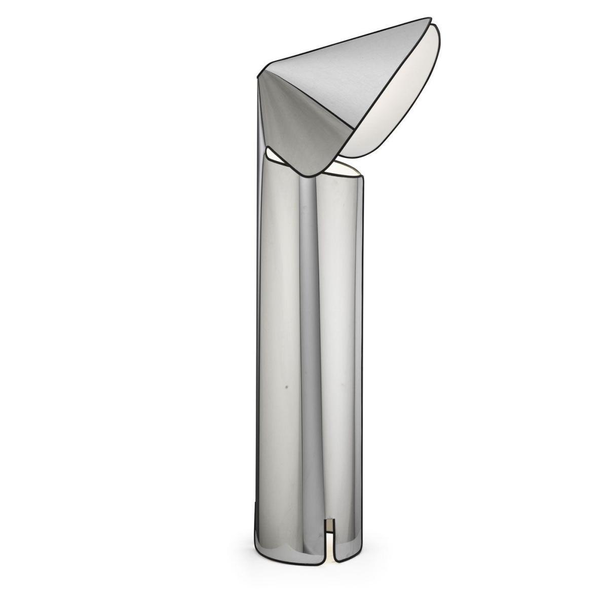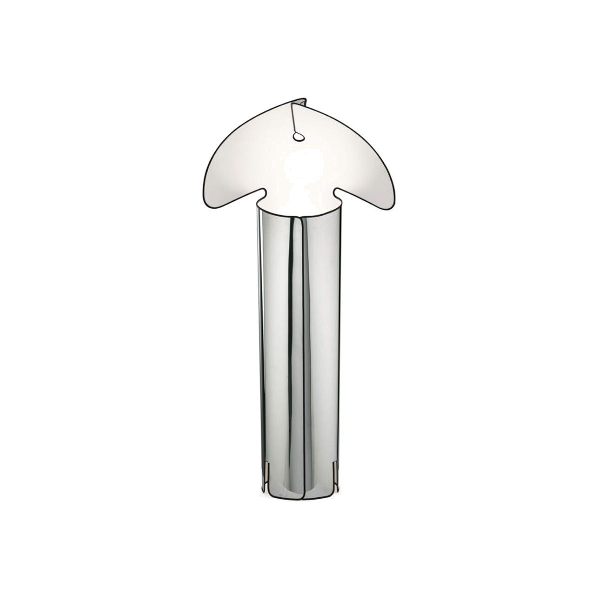 Debuted by Mario Bellini in 1969, the Chiara floor lamp is a deceptively simple construction formed from a single sheet of laser-cut stainless steel. Cut and rolled into a self-supporting stem, the lamp is topped with a sculpted 'hat' that reflects and diffuses a hidden light source. Said to resemble a nun's wimple and veil, the 2020 re-issued Chiara is sure to make an impression in any room ' even when switched off.