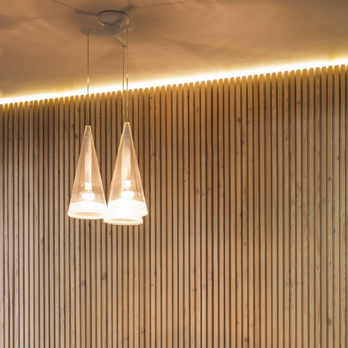 Designed by Achille Castiglioni for Flos, this ceiling light is contemporary in look and provides direct light. It features three hand blown glass conical diffusers with sandblasted edges and injection-molded, opaline silicone diffuser protection rings. Finished in a gloss white powder-coated tubular steel body and with a ceiling rose assembly consisting of 8 extruded aluminium arms and 30% fiberglass reinforced, injection molded polyamide side plugs, this is the perfect combination of lights to provide ambient lighting in any room. Key features: * Ceiling light * Material: glass * Dimensions: H35.5cm * Bulb required: 3 x 40W E14 IBM (not included) * Cord length: 2.6m * Designed by Achille Castiglioni in 1996 * Pressed and galvanized steel ceiling fitting