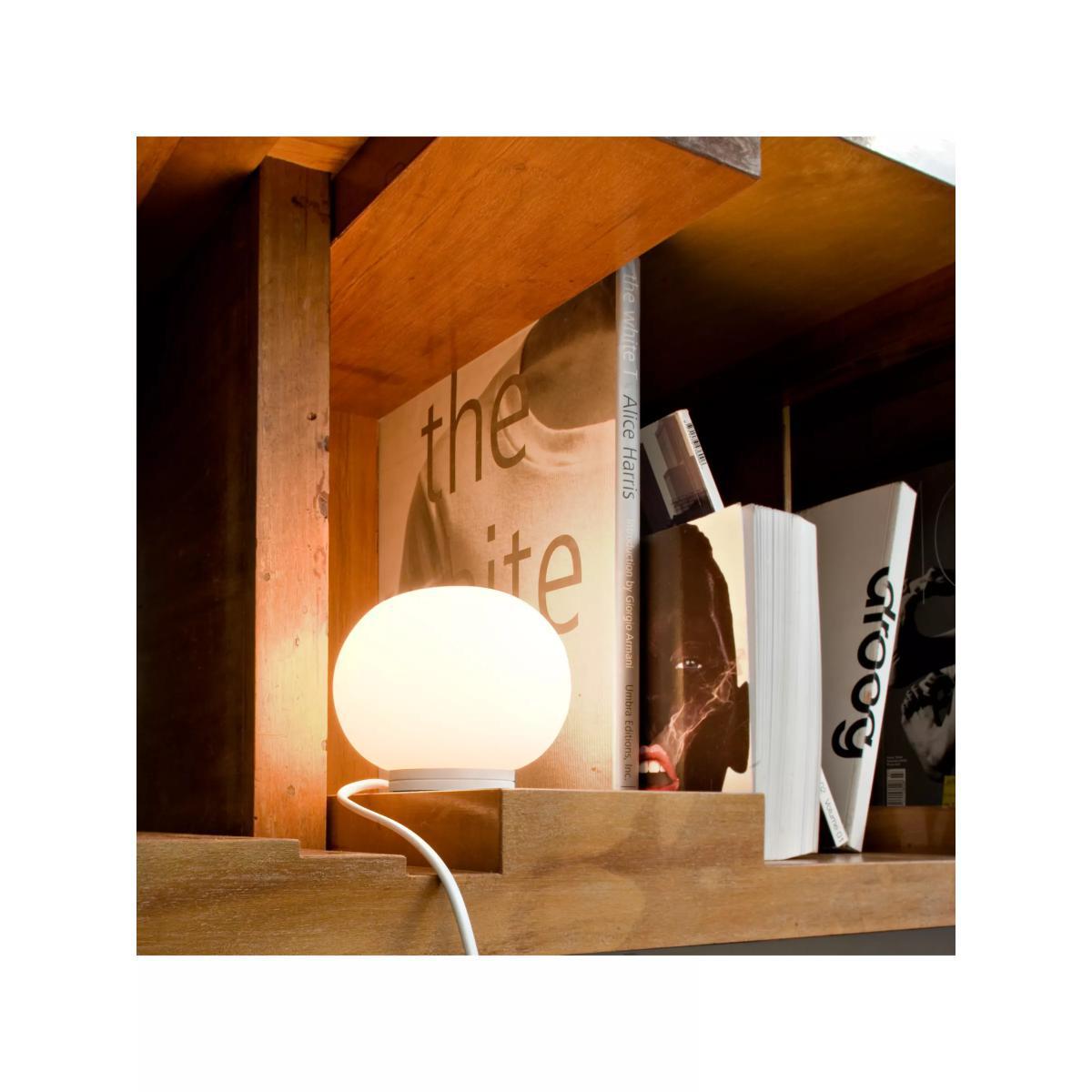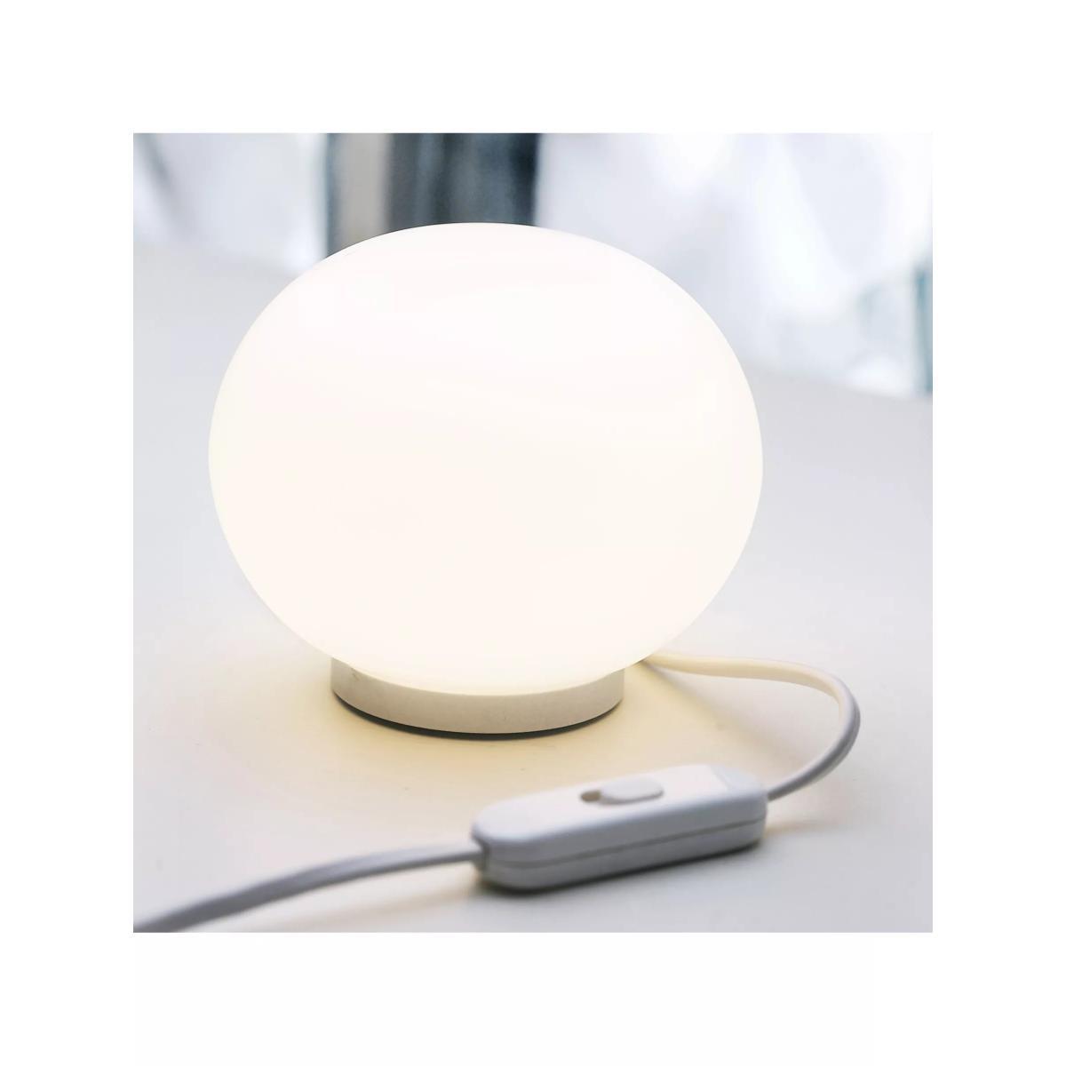 Part of the popular Glo-Ball Series from Flos, this mini table lamp was created by artist Jasper Morrison. The hand-blown, opaline glass shade enhances a diffused wash of light, and it is enhanced with satin-finished base. This petite table lamp will lend a striking, bright glow to your room.