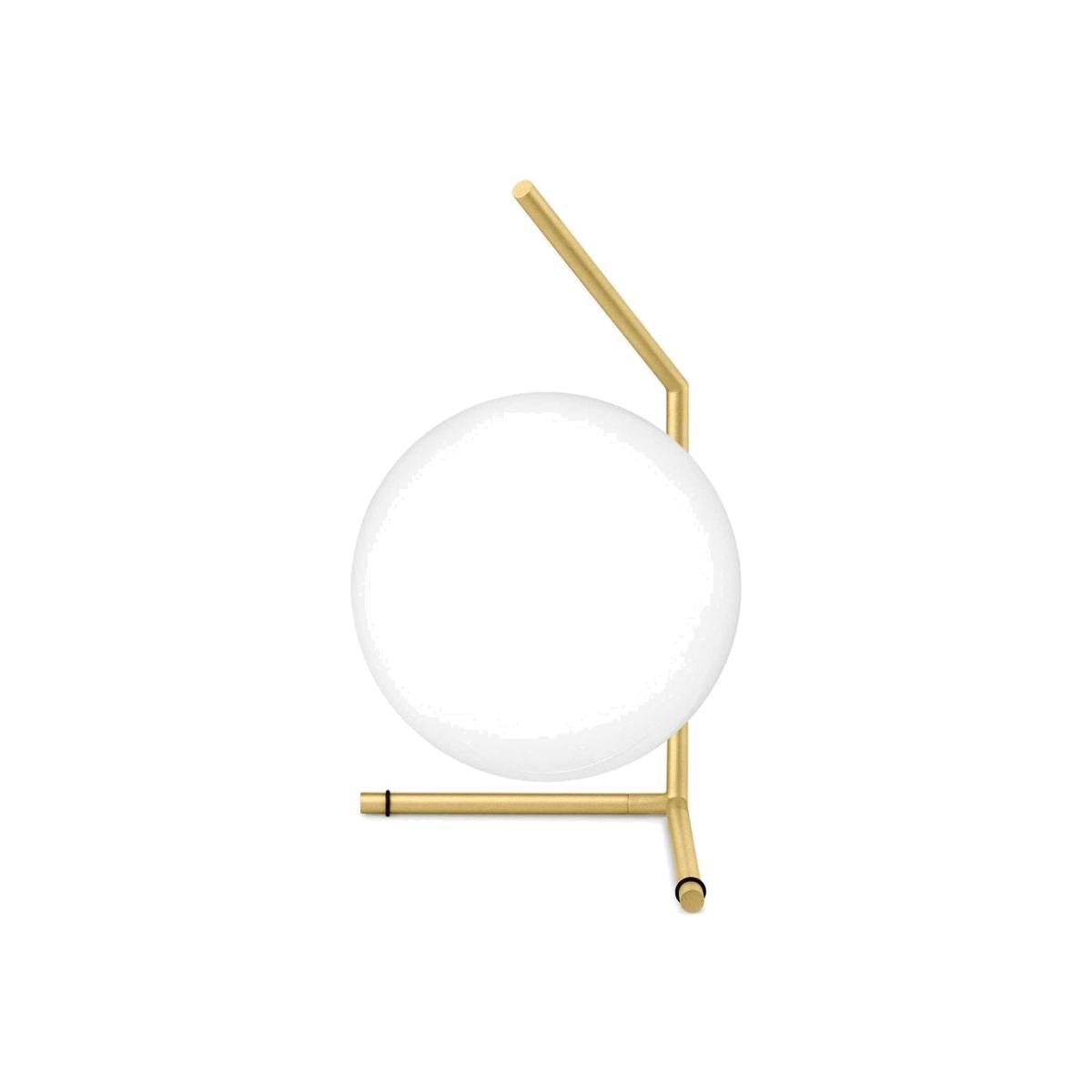 Designed by Michael Anastassiades, the IC T1 is a wonderful mix of lustred finishes and modern forms. Shaped from a series of tubular brushed brass rods, the angled frame has a dainty silhouette that rests on a flat three strand base. The spherical glass shade delicately fixes to the slender frame, its frosted finish gently distributing light across the room.