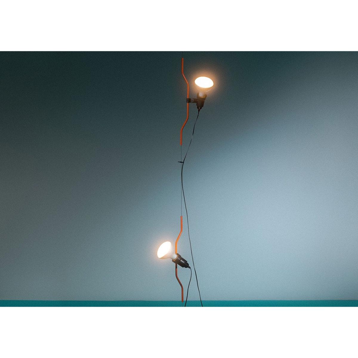 Born out of a 1971 collaboration between Achille Castiglioni and Pio Manzù, the Parentesi was named for the parenthesis symbol—a visual reference to the nickel-plated shaped tube that lives on a floor-to-ceiling steel cable. A 50 years old best seller, now presented in a new edition using the colours each designer loved.
