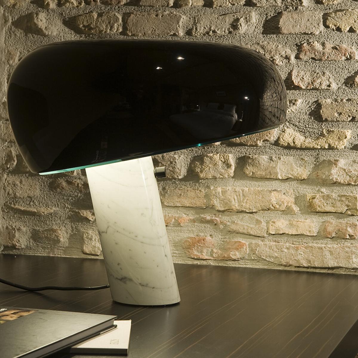 Sleek and stylish this Snoopy table lamp from Flos is modern design at its finest. Designed in 1967 by Achille and Pier Giacomo Castiglioni, the lamp combines a metal shade with a chic marble base. Perfect for every room in the house, it features a touch on/off dimmer sensor. Available in two colours. Key features: * Material: marble, metal * Dimensions: H36.9xW39.4xD39.4cm * Black colour * Curved design * Dimmable * Designed by Achille and Pier Giacomo Castigloni