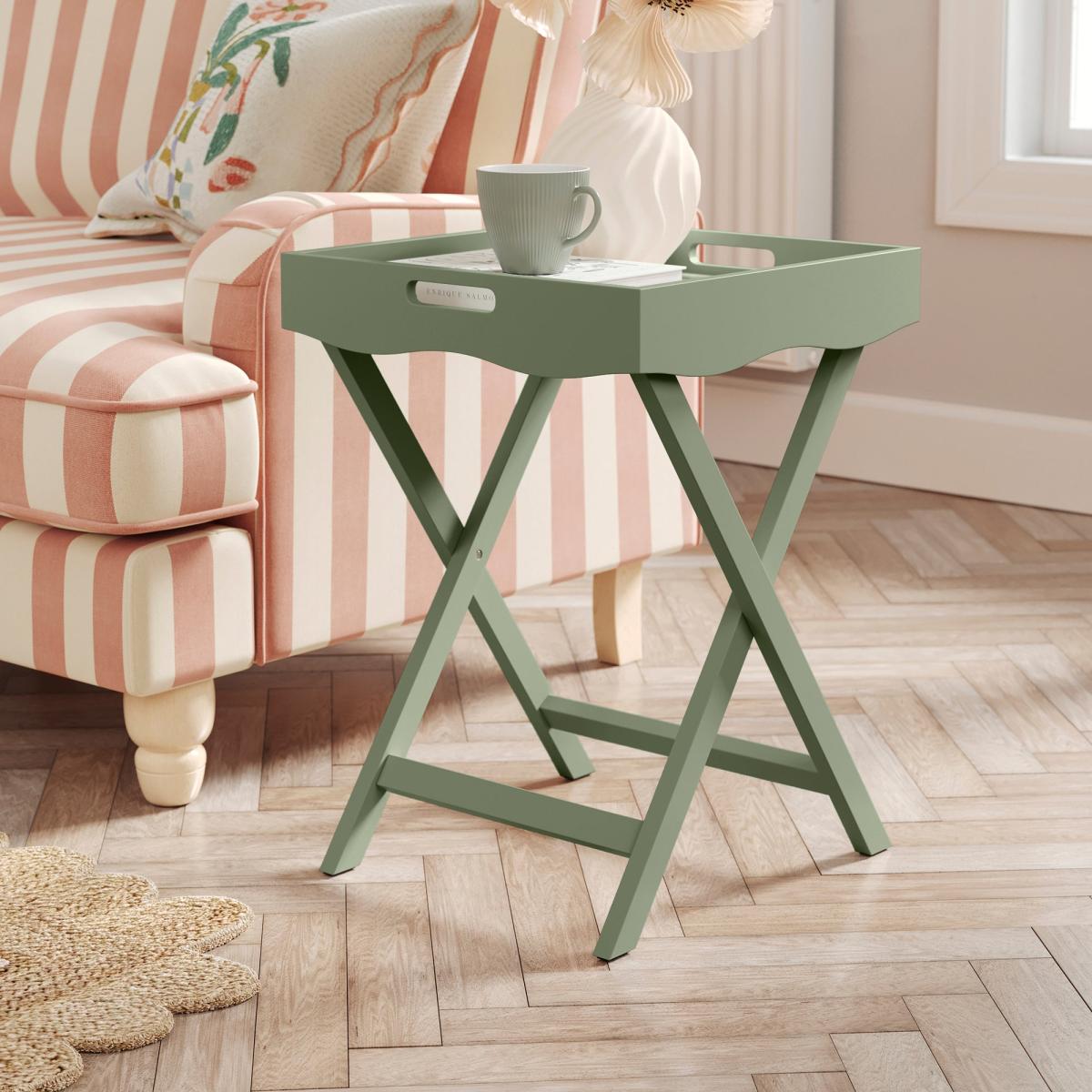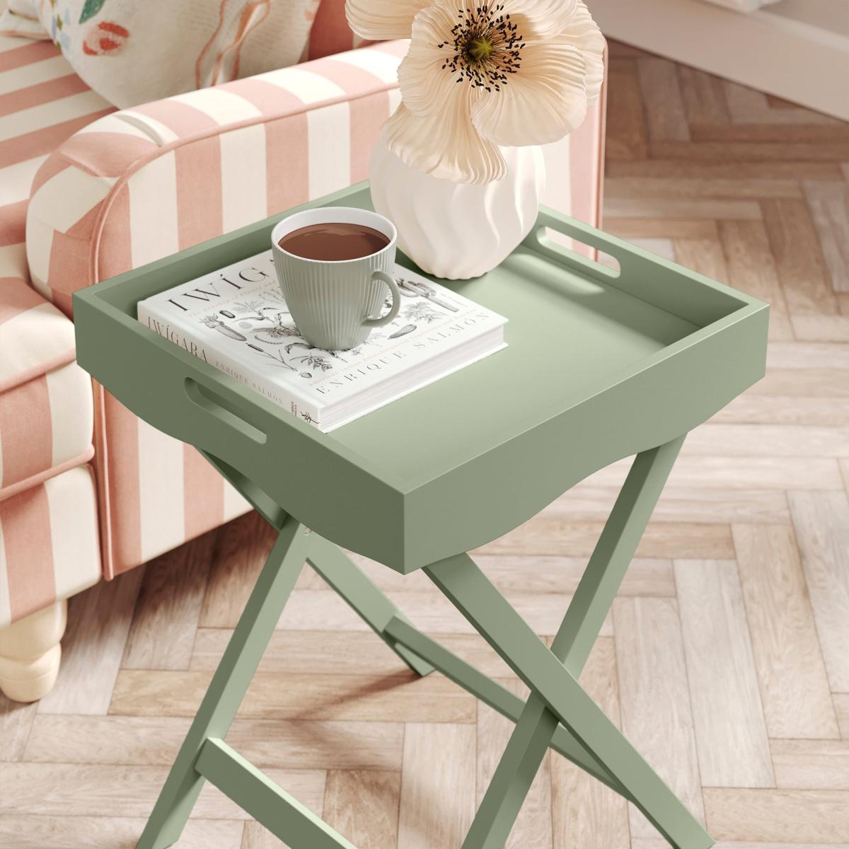 I’m a fan of the Flossie tray table for its neat scalloped edge and lightweight folding base - it feels both practical and decorative. The muted green finish sits well in cottage-style or coastal schemes, but equally suits a pared-back Scandi or modern country interior. To style, use it beside an armchair or at the end of a sofa with a small vase of fresh flowers or a favourite candle. It also makes a handy, portable coffee or bedside table: layer a coaster, a slim notebook and a pair of reading glasses for everyday use, or swap in a potted succulent for a low-maintenance display.