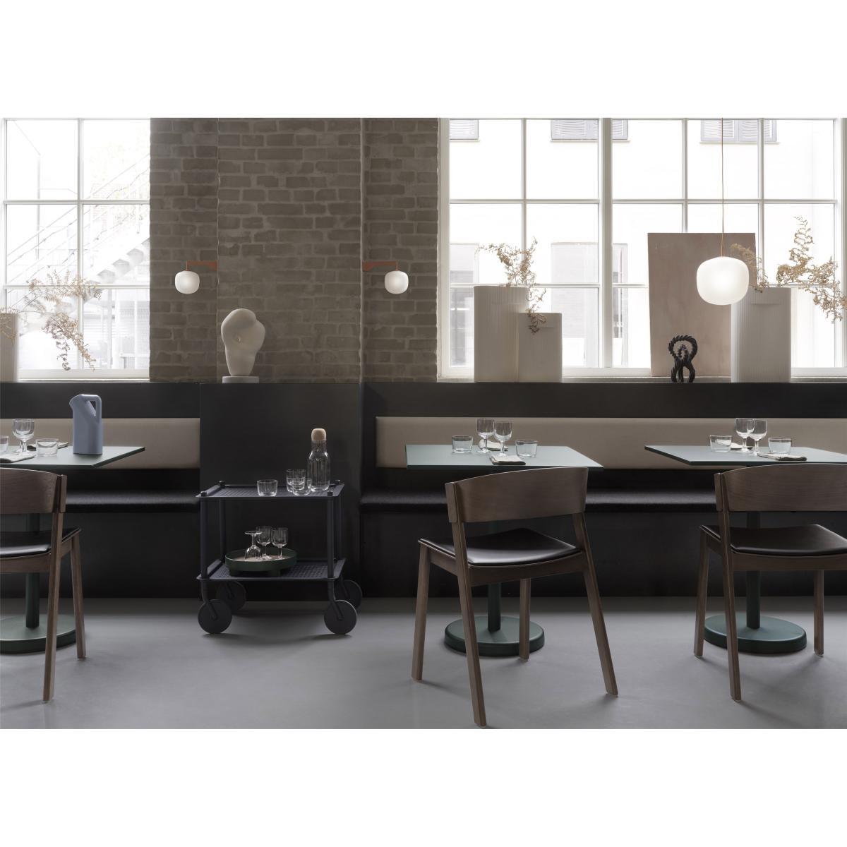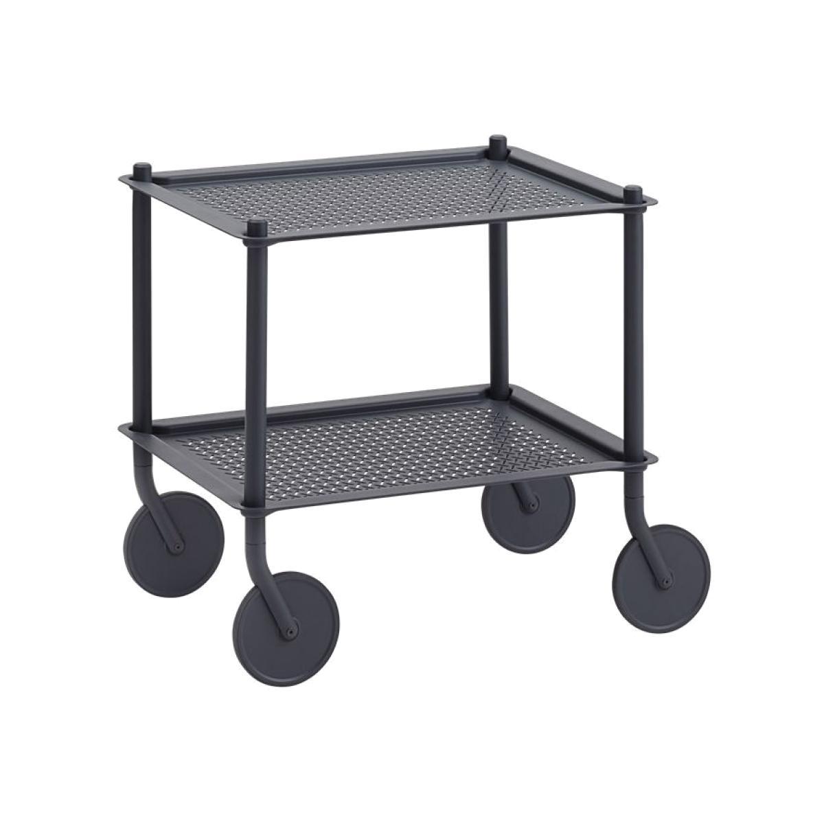 The Flow trolley moves effortlessly from kitchen to living room: ideal for serving an aperitif in the living room or clearing the table, it can also serve as storage in an office or bathroom, act as a side table. Entirely made of steel, it combines a thick tubular structure that contrasts with the lightness of the grooved, embossed steel tops. The micro-perforations form a contemporary, delicate, graphic pattern. The Norma Studio designers: “With the Flow trolley, we wanted to create a versatile design that could be used in any setting, whether at home, in the workplace or in a hotel room. With its grooved, embossed metal trays that give it an understated shine, the Flow trolley adds a contemporary, elegant dimension to a traditional form while providing functionality to make everyday life easier. ‘’.