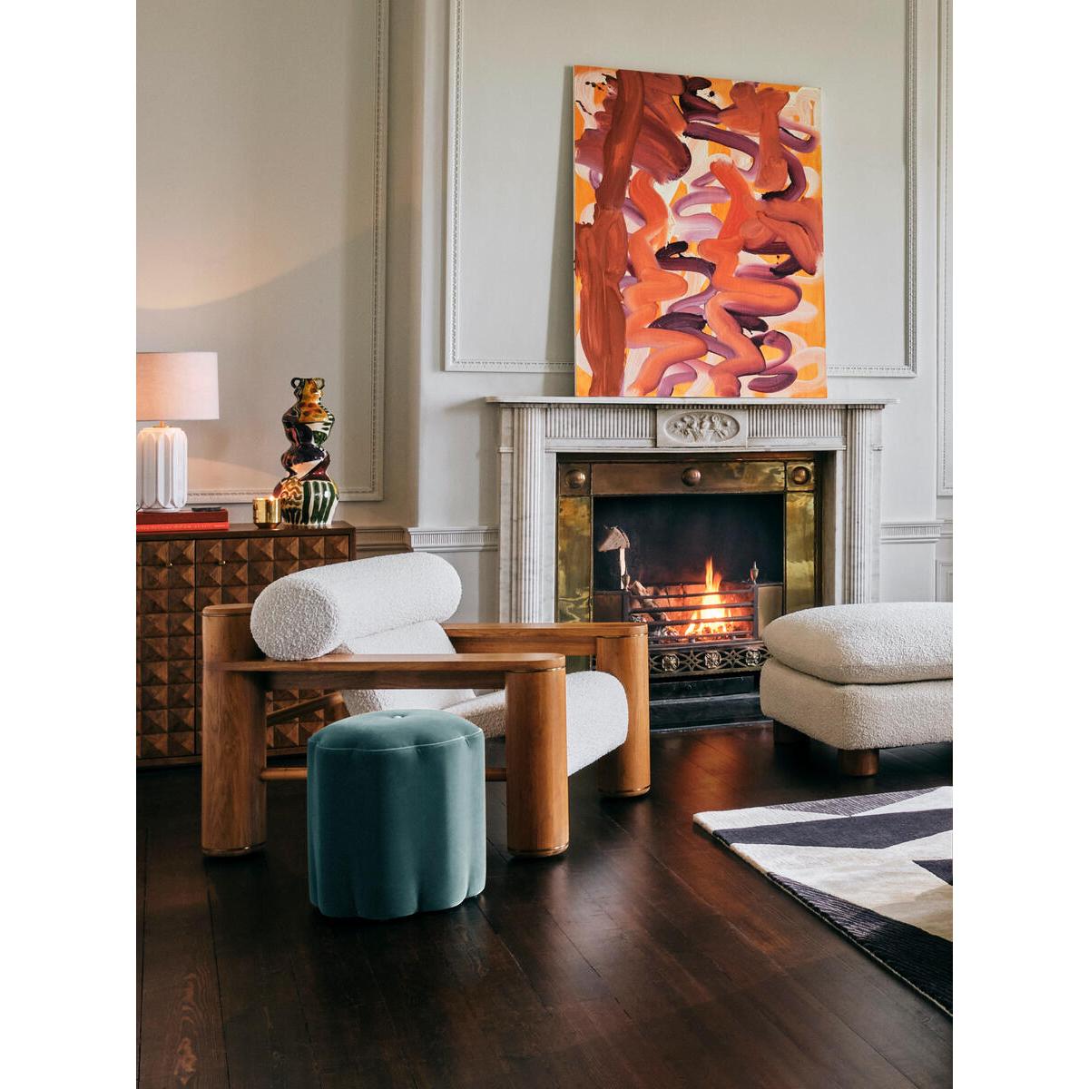 I love this footstool for its plush Moleskin velvet finish in marine blue-it's a versatile piece that adds both texture and colour to a variety of interiors. It works particularly well in modern or minimalist spaces, where it can serve as a statement accent, but it also complements more eclectic or luxe settings thanks to its rich fabric. Practical tips include using it as a footrest in a cosy living room or as extra seating in a guest bedroom. Its compact size makes it easy to move around, and its luxurious feel elevates even simple arrangements. Pair it with neutral palettes or introduce it into a sea-inspired theme for a fresh, tactile touch.