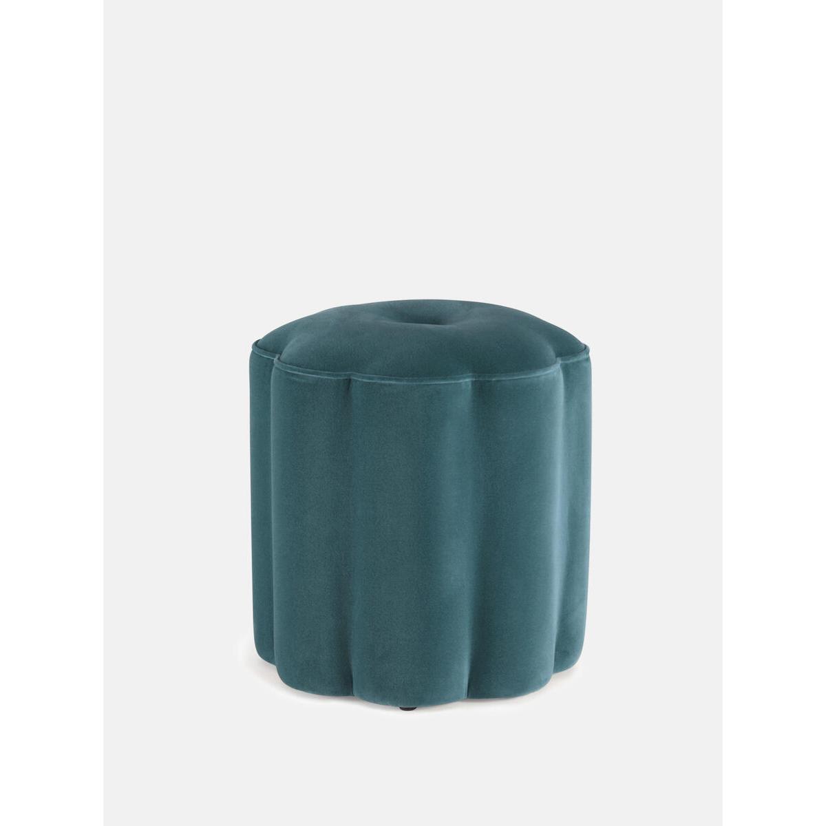 We use footstools in every room in the Houses because they'recompact and versatile, doubling up as extra seating for guests, or,with a tray on top, as a side table. With its petal-shaped seat,this velvet footstool is a contemporary take on the fringed designsseen at Kettner's in Soho. Flower-shaped stool with velvet upholstery. Covered-button detail on seat. Oak frame and legs. Inspired by the footstools seen at Kettner's Soho.