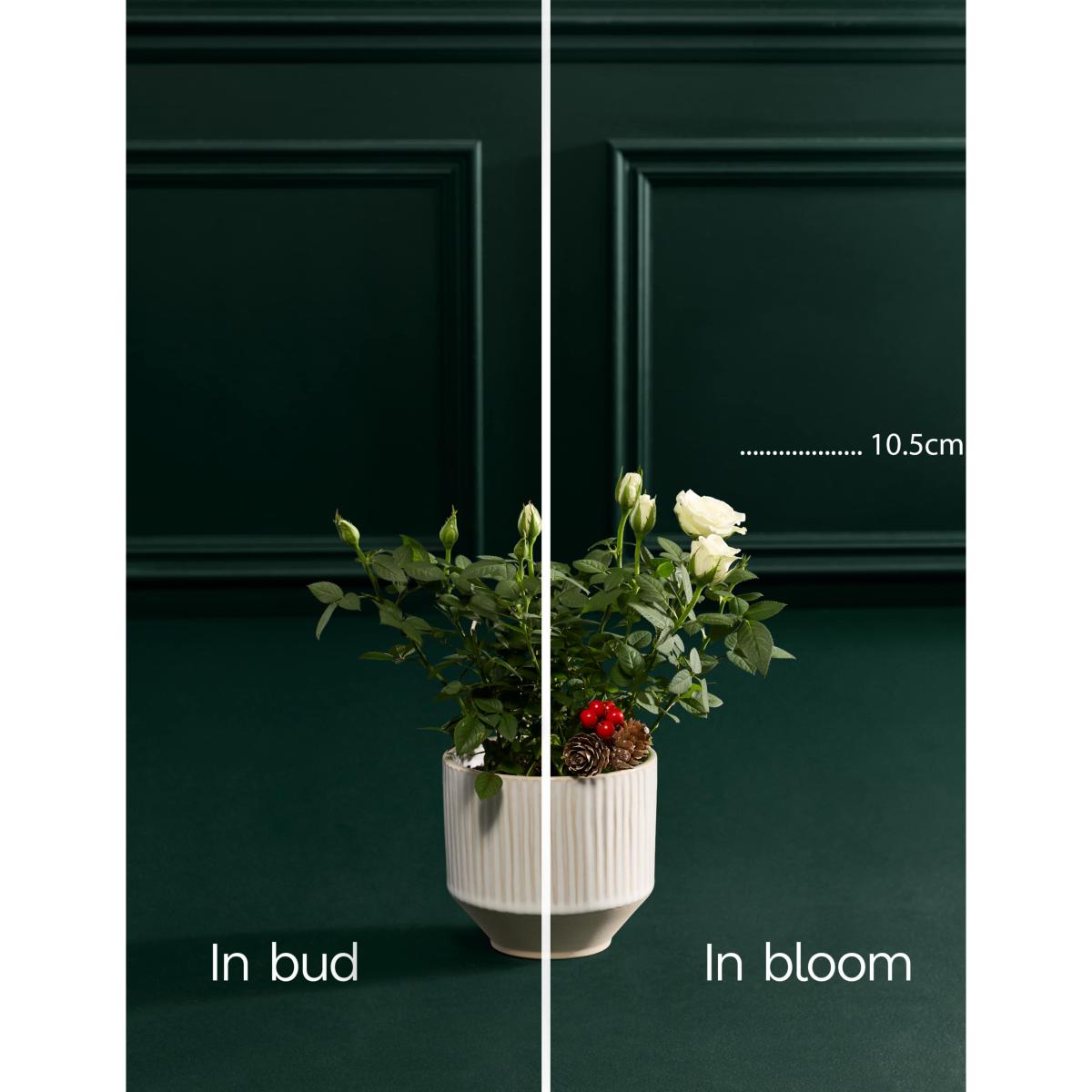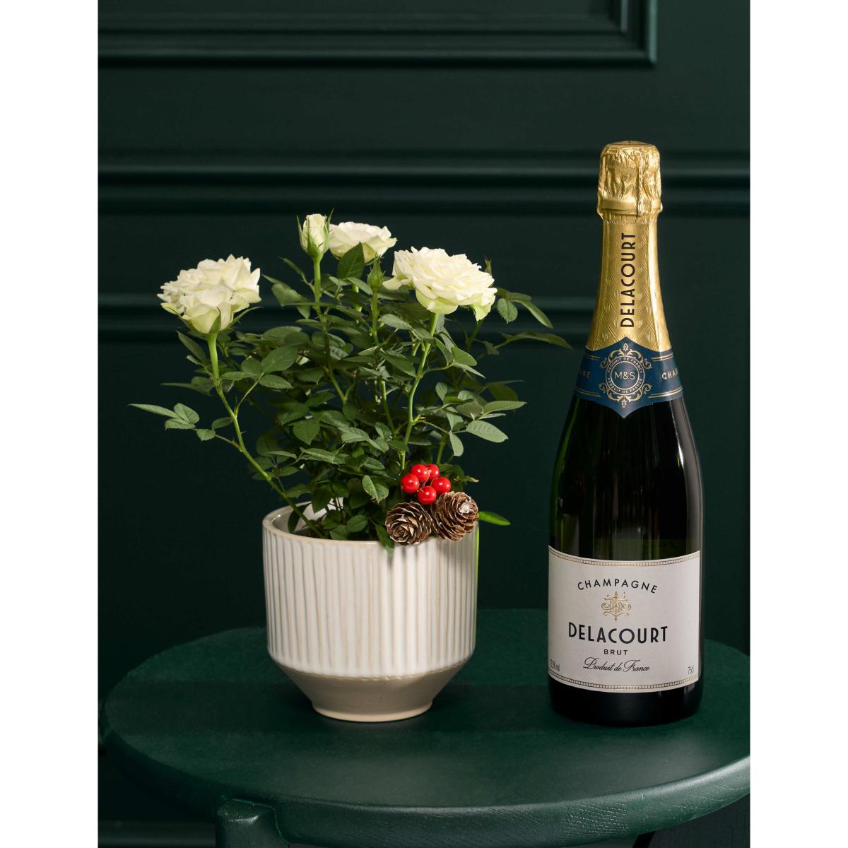 Add a touch of festive elegance with the Christmas White Rose, beautifully presented in a ceramic pot. Paired with a bottle of Delacourt champagne, it’s a luxurious gift that captures the spirit of the season.