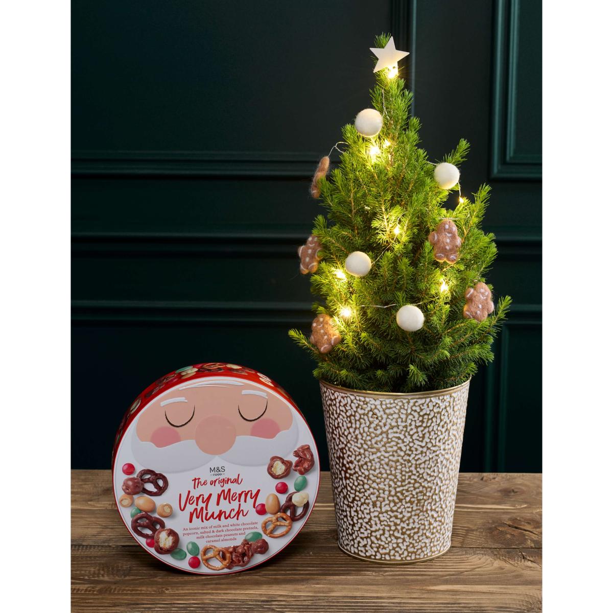 Flower Market Gold Decorated Christmas Tree with Merry Munch Tin