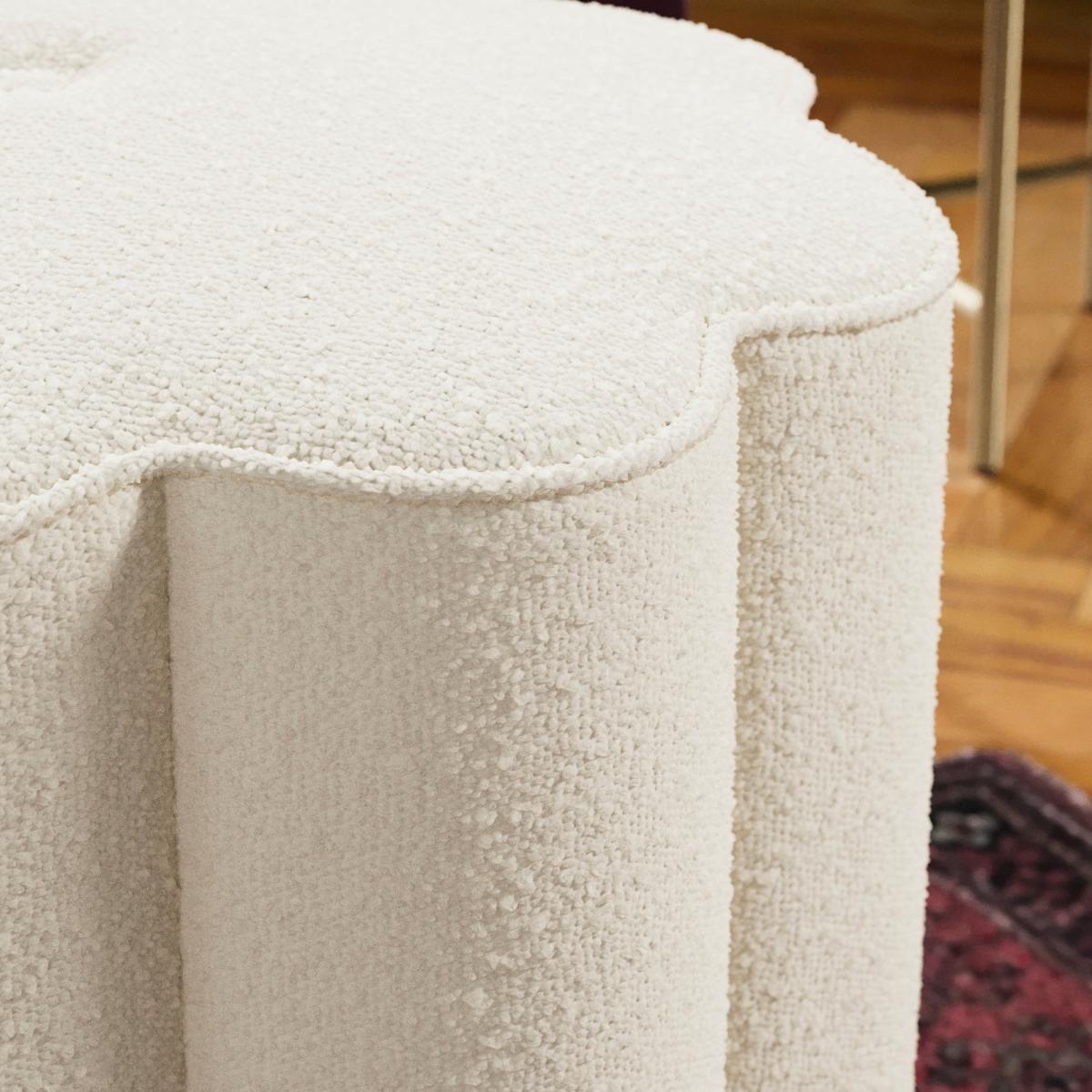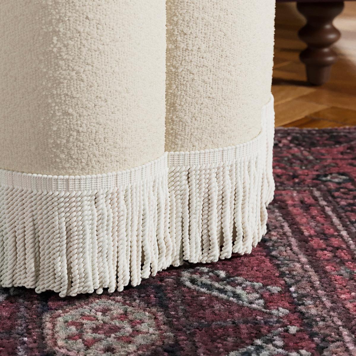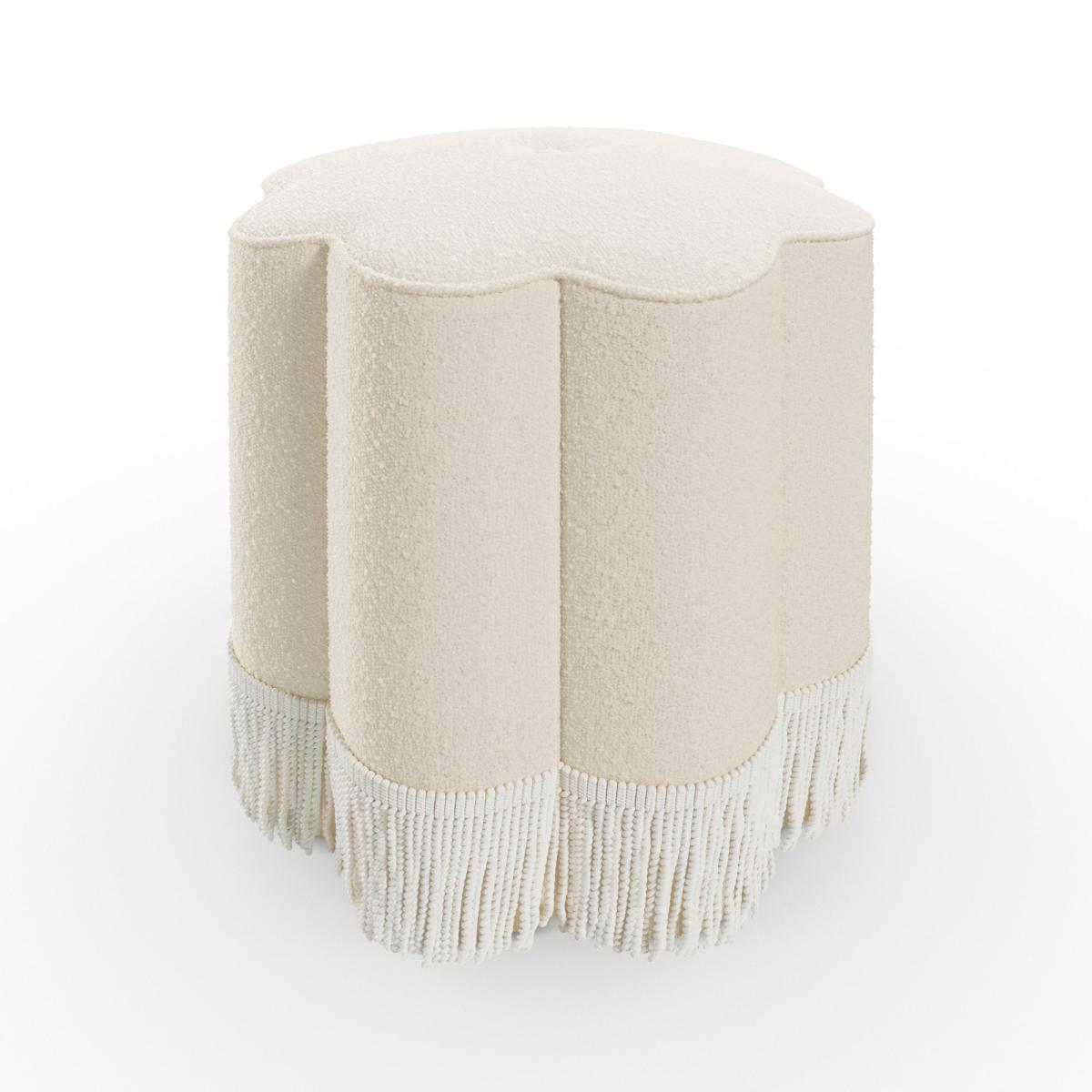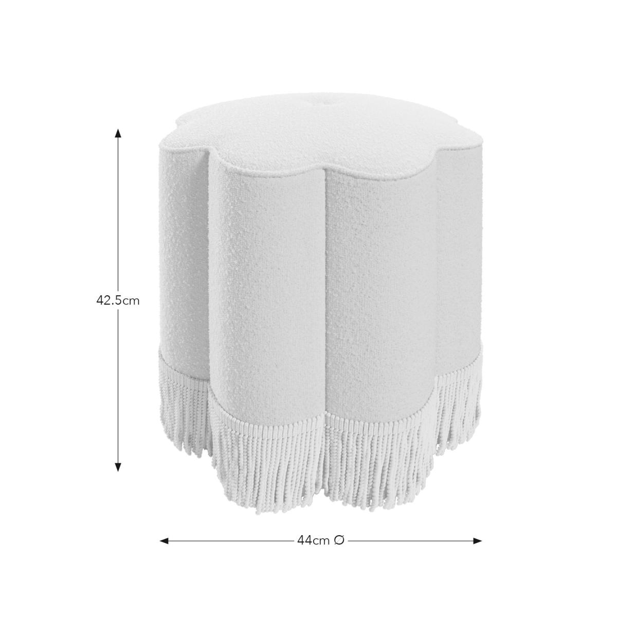 I love the flower tassel boucle footstool for its playful texture and cosy appeal. Its tactile boucle fabric adds warmth and visual interest, making it a versatile piece for both contemporary and eclectic interiors. It works particularly well in casual living rooms, reading nooks, or bedrooms where a touch of personality is desired. For styling, consider placing it alongside neutral-toned sofas or layered with textured cushions to enhance its tactile qualities. A good practical tip is to keep the tassels free of dust by gentle brushing, and it can double as an extra seat or a side table for a relaxed, inviting feel.