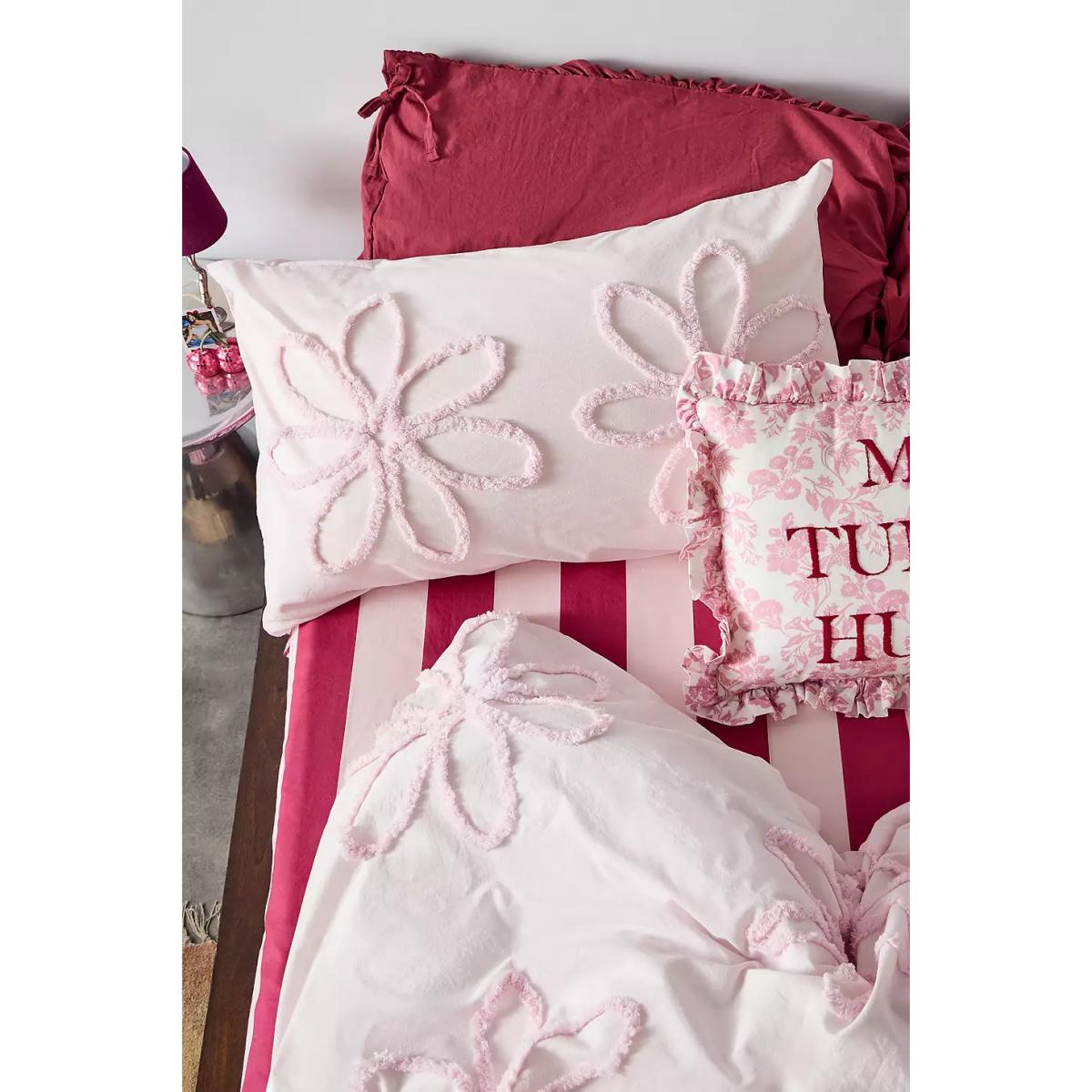 Pretty pink duvet set with a tufted floral design. Crafted from soft cotton, complete with a matching duvet cover and pillowcases. **Content + Care** \- 100% Cotton \- Machine wash **Size** \- Single (includes 1 pillowcase): 135cm (W) x 200cm (H) \- Double (includes 2 pillowcases): 200cm (W) x 200cm (H) \- King (includes 2 pillowcases): 230cm (W) x 220cm (H) \- Pillowcase: 75cm x 50cm