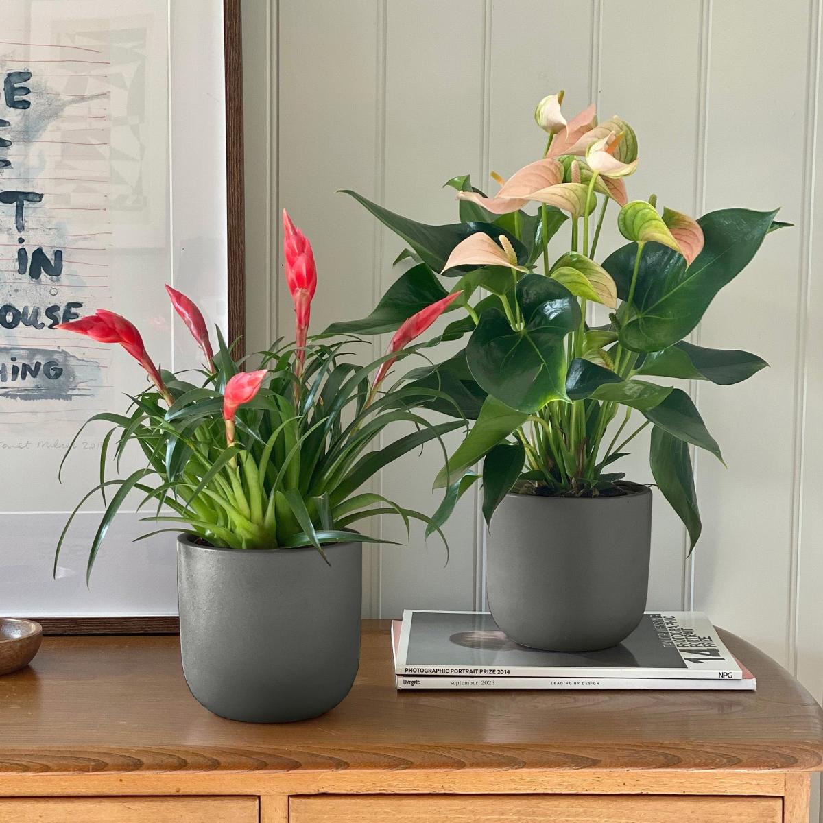 * Includes 1 x Vriesea Astrid, 1 x Peach Anthurium* Enjoys Bright, Indirect Light* Needs Watering When Top 2 Inches of Soil are Dry* I'm Perfect for Those New to Plant Parenthood* Pet Friendly - Safe for Furry Friends & Little People* Air Purifying - I Remove the Nasties Lurking in Your Room Our beautiful Flowering Pair is the perfect way to naturally bring some colour into your home. Featuring the quirky Vriesea Astrid and the flamboyant Peach Anthurium, these plants are real showstoppers. Both plants have gorgeous green foliage, but feature pops of peach and dark pink - making a beautiful addition to any room. Native to tropical environments, these plants will appreciate a humid environment so we recommend misting them regularly to keep them happy and thriving.**How to keep me happy:**1. Light:Enjoys bright, indirect light.2. Water:Needs watering when top 2 inches of soil are dry.3. Expert level: I'm perfect for those new to plant parenthood. Please note: As this is a living product, your plant may vary to the one photographed.