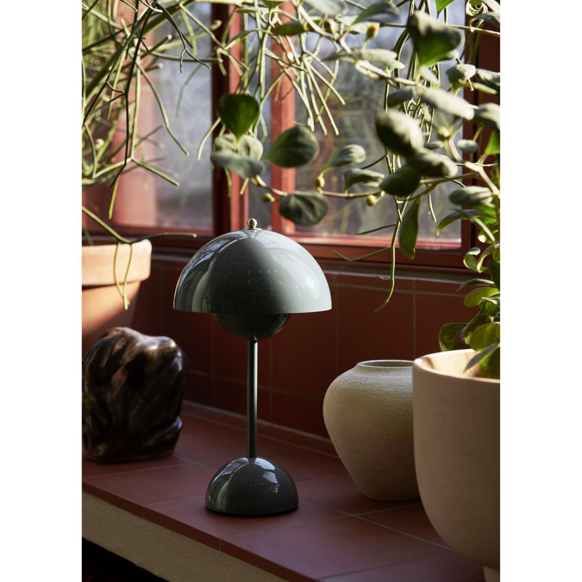 A cult object of design, the Flowerpot lamp was created in 1968 by Danish designer Verner Panton, one of the outstanding figures of Scandinavian design of the 20th century. Flowerpot gets a make-over with this cordless version. Smaller and lighter, it really can go anywhere: cordless and rechargeable, it can be moved around both inside the house and outdoors (IP44)! This portable polycarbonate lamp is the exact replica, with reduced dimensions, of its big sister. Flower Pot has become an iconic object of the 70s, but its timeless design has survived the decades without ageing one bit! The strength of this lamp lies in way the two domes that make up the shade interlock. Flower Pot displays round, elementary, fun shapes. Equipped with a battery and a micro-USB charger, this wireless lamp has a 11 hour battery life. The steel touch dimmer located above the lampshade adjusts the brightness (100% - 50% - 20%). The Flowerpot VP9 lamp will look great everywhere: house, garden, terrace, on a table, desk, shelf, console, or even on a bedside table. It’s equipped with an energy-saving, efficient LED light source. Verner Panton (1926 - 1998) is considered one of the most influential designers of the 20th century. During his career, he created objects with innovative, futuristic design such as the famous Panton Chair which still inspires the most avant-garde designers to this day. Its style, typical of the 60s and 70s, remains imbued with great modernity.