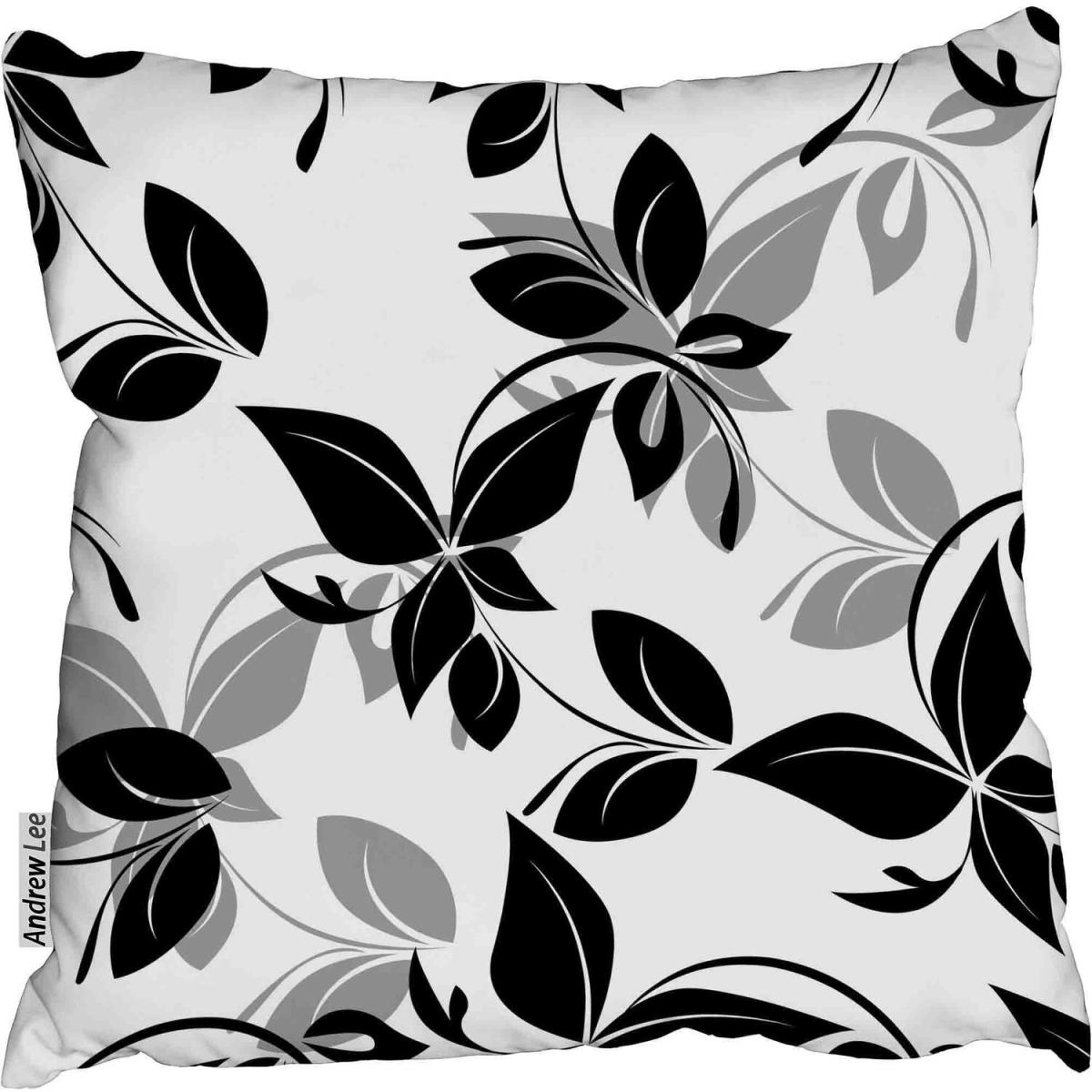 Flowers and floral pattern black and grey Outdoor Cushion - Black / 60cm