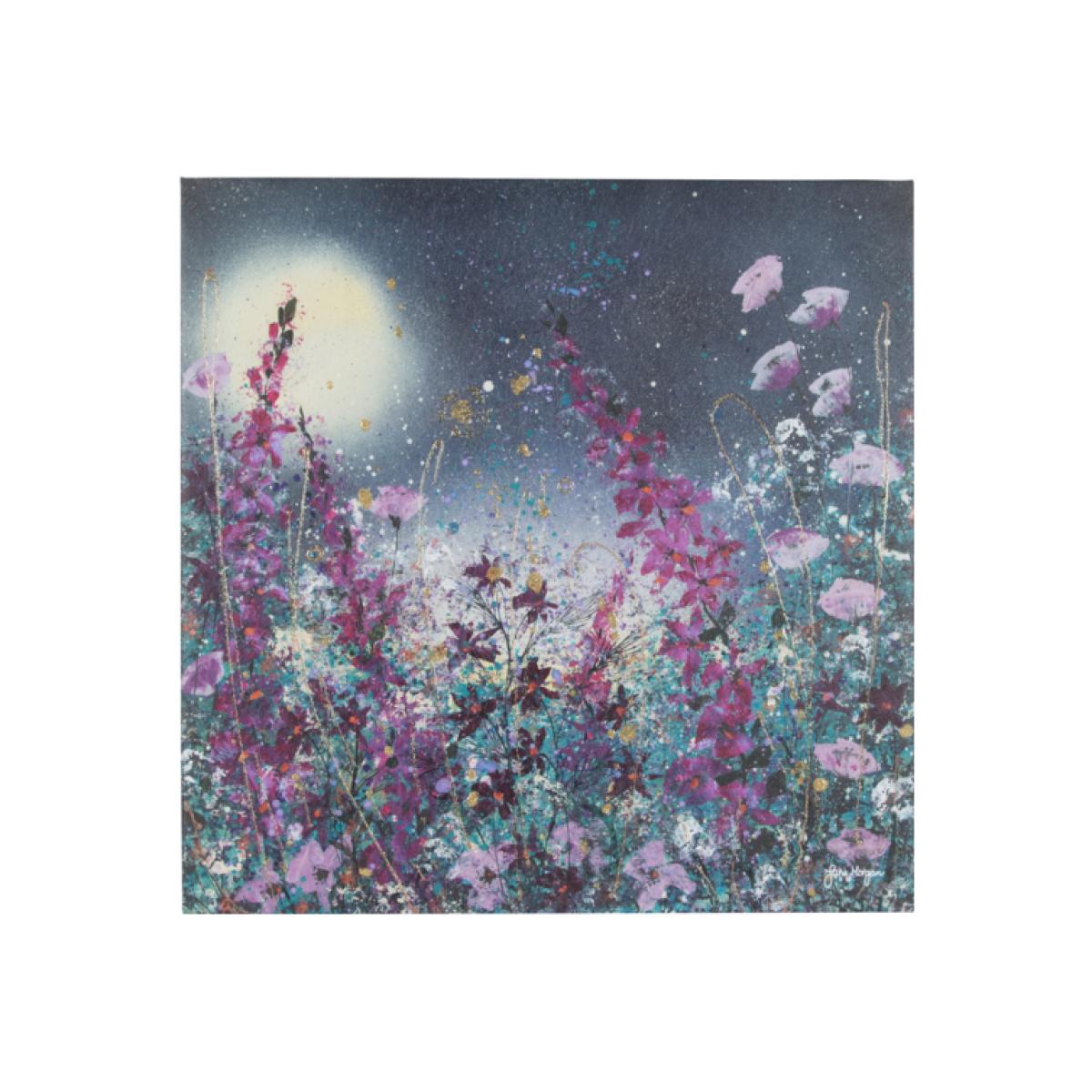 I really like this floral piece with its dreamy, illuminated feel, making it a versatile choice for a variety of interiors. It works especially well in contemporary or modern spaces, adding a touch of colour and visual interest without overwhelming the surrounding decor. For styling, consider pairing it with neutral backdrops to let the colours pop, or use it as a focal point above a simple sofa or console table. Practical tips include dressing it with simple, understated frames to keep the attention on the artwork itself, and situating it in areas like bedrooms or living rooms where its calming, night-time inspired theme can really be appreciated. Overall, a great statement piece that can bring a sense of serenity and colour to your home.