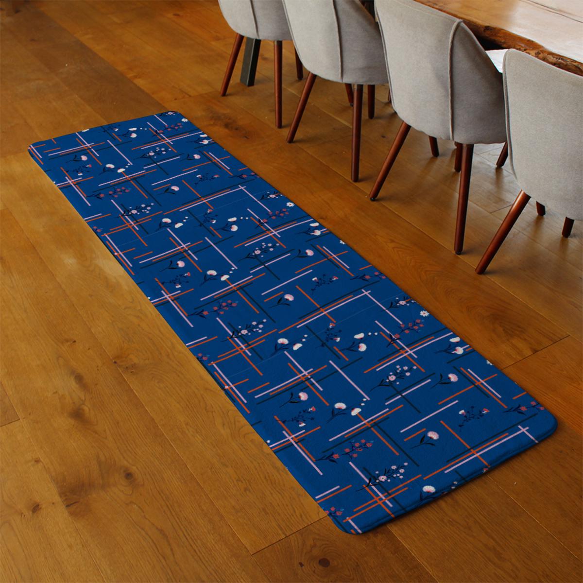 Flowers With Check Grid For Fashion Runner Rug - Blue