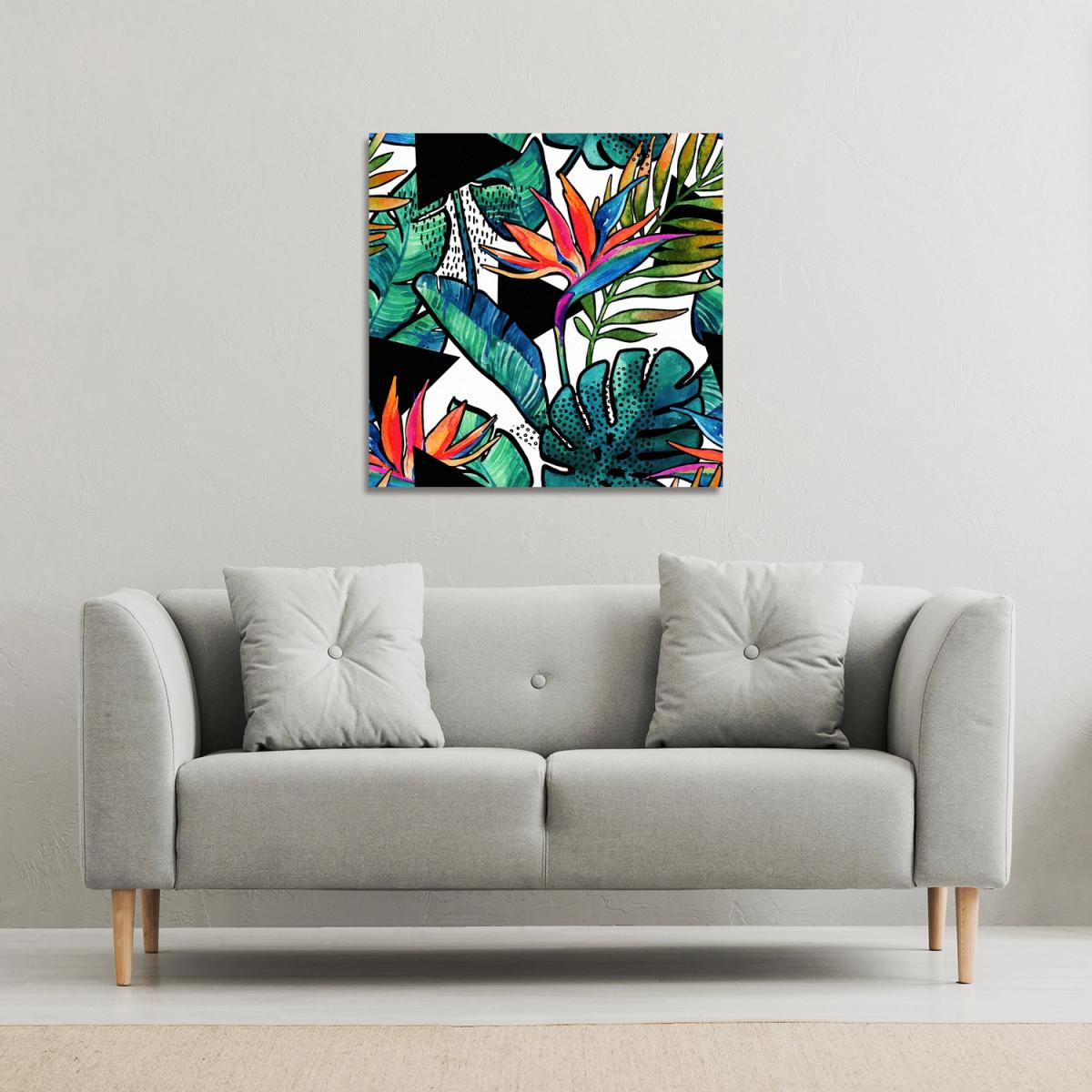 I love this flowers with contour canvas because of its bold, vibrant colours and modern botanical vibe. It works particularly well in contemporary or eclectic interiors, adding a splash of colour and visual interest to neutral walls or minimalist spaces. Practical styling tips include pairing it with understated frames or hanging it above a simple console table or sofa to make it a focal point. It can also complement natural materials like wood or woven textiles, creating a lively yet balanced aesthetic. This piece is versatile enough to work in living rooms, bedrooms, or even kitchens, where it will inject some energy and personality into the space.