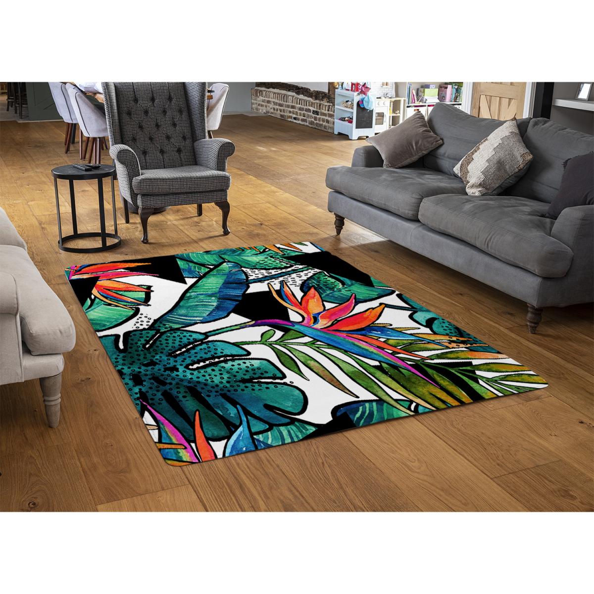 I love this floral-inspired rug for its vibrant colour palette and contemporary design, which can instantly energise a space. It's quite versatile and works well in both modern and eclectic interiors, especially against neutral walls or minimalist furnishings to make the pattern really pop. For practical styling, pair it with simple, understated furniture to let the rug stand out, and keep the surrounding decor in complementary tones - think muted blues or subtle greens - to create a cohesive look. Its size makes it perfect for anchoring a seating area or adding visual interest in a larger room, offering both style and functional definition to your space.