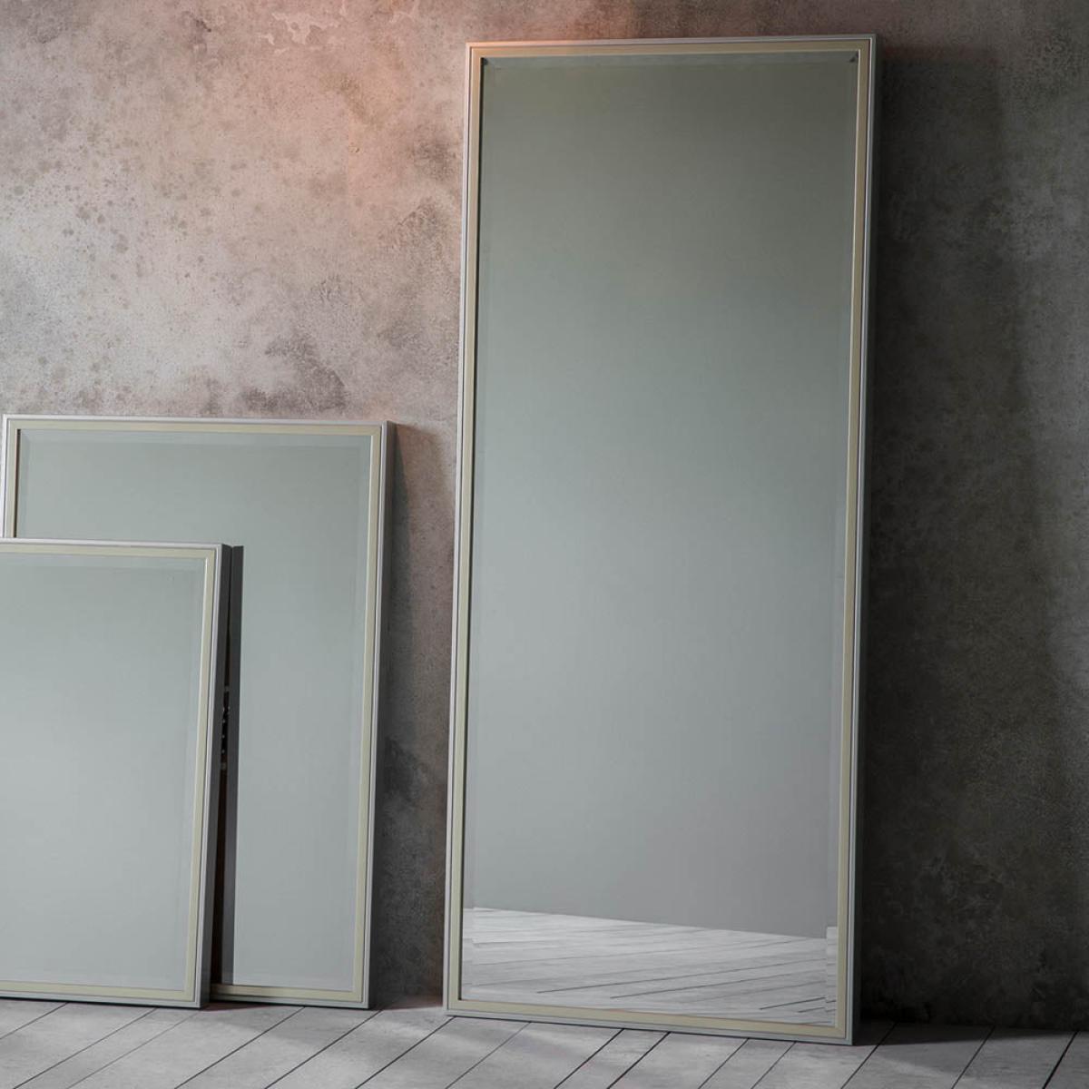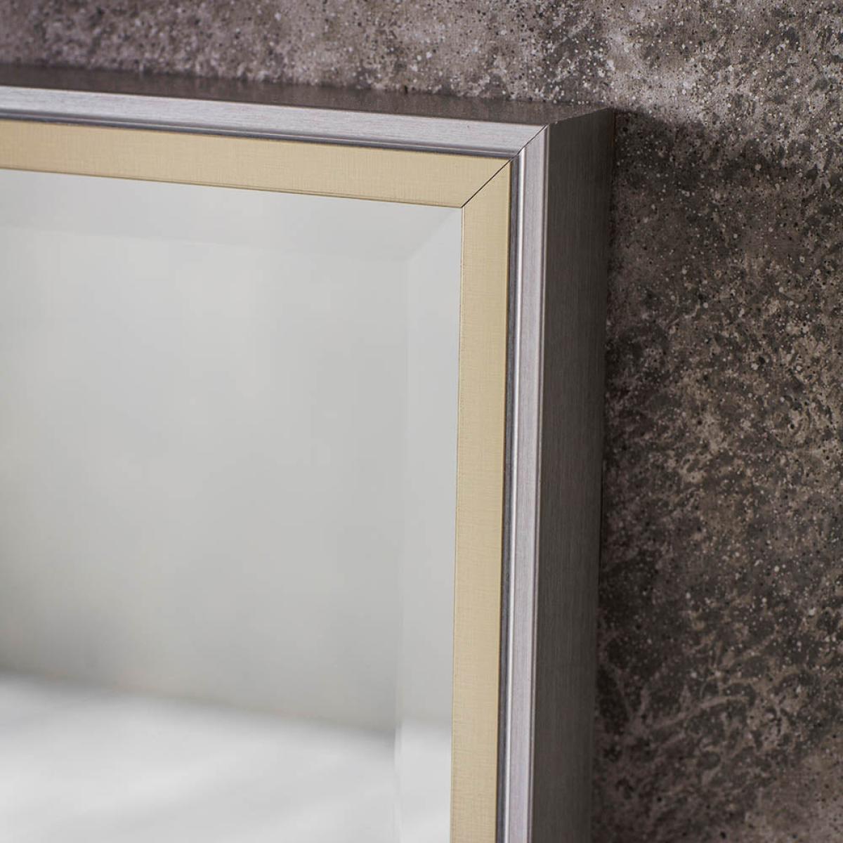 The sleek and stylish this Leaner mirror features a deep contemporary 2 tone frame in a pewter and champagne gold finish.