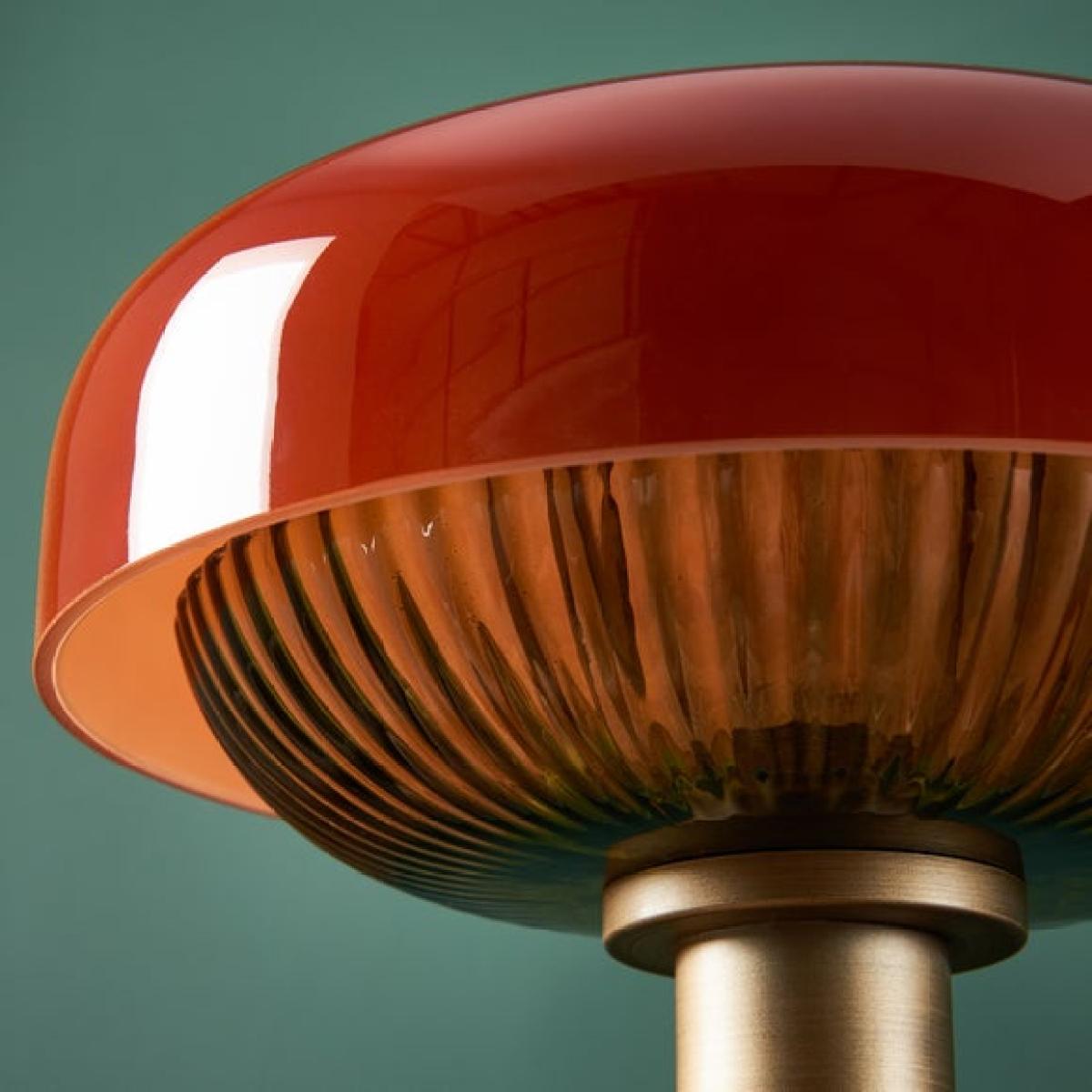 * Eye-Catching, Stylish Look & Design * Ribbed Orange & Green Tinted Shade * Made from Metal & Glass * Handy In-Line Switch * Matching Items Available Separately Add a flair of mid-century charm with the Floyd Retro Floor Lamp. Featuring a stunning antique brass finish and orange-green ribbed tinted glass shade, it’s a bold statement piece that brings retro style to life.