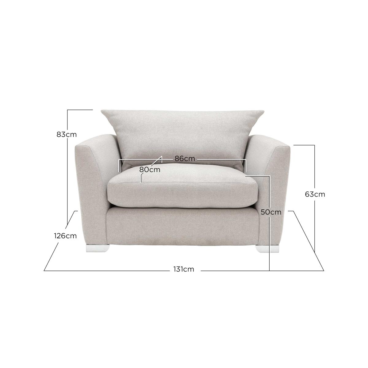 The Floyd Snuggler Chair is the epitome of comfort and style, handmade with high quality materials in Britain. Its modular design allows for versatile placement in any family home. Sink into its sumptuous deep cushions and unwind, while the sleek tapered arms and chrome feet add a touch of modern elegance. Perfect for lounging or socialising, this timeless piece embodies luxury and relaxation.