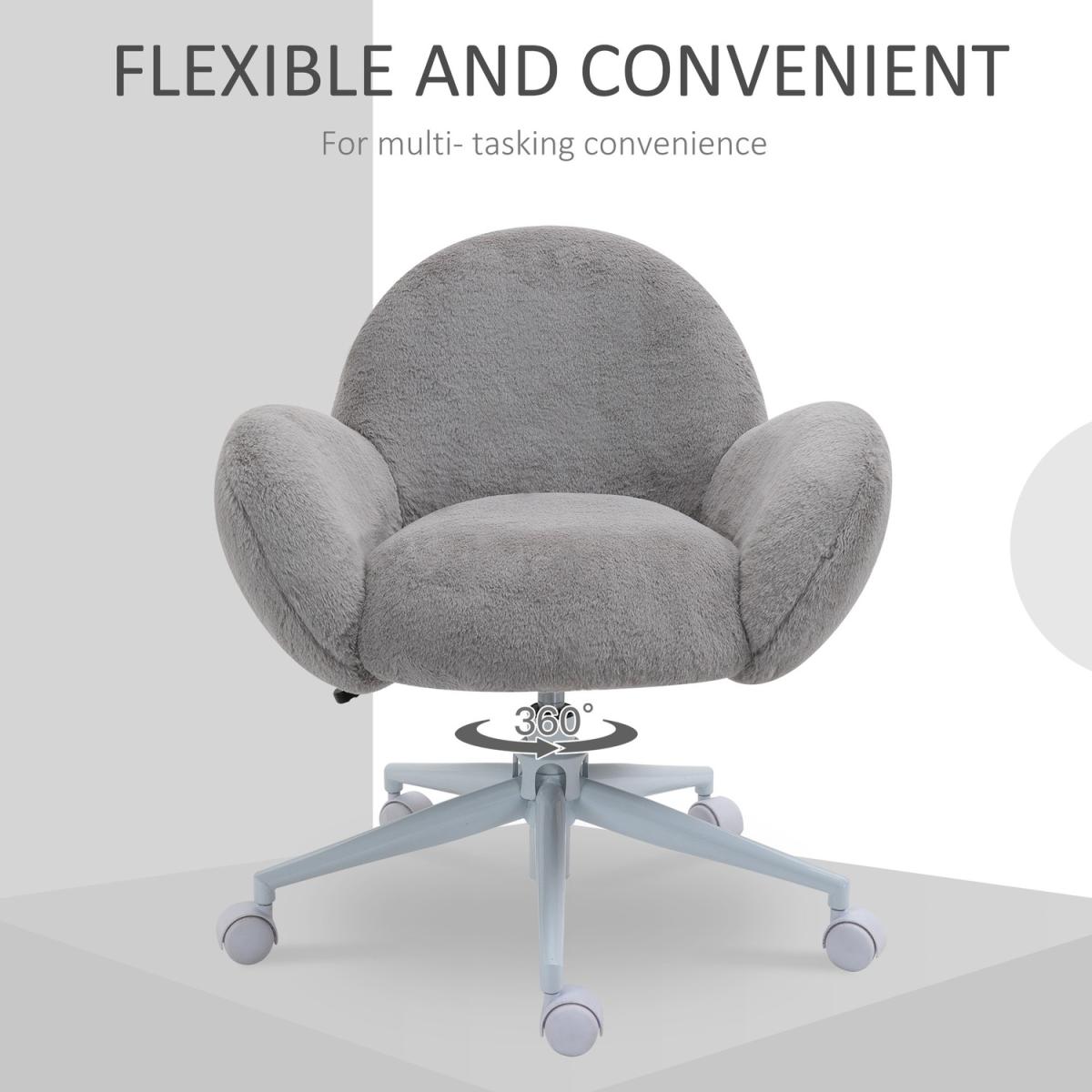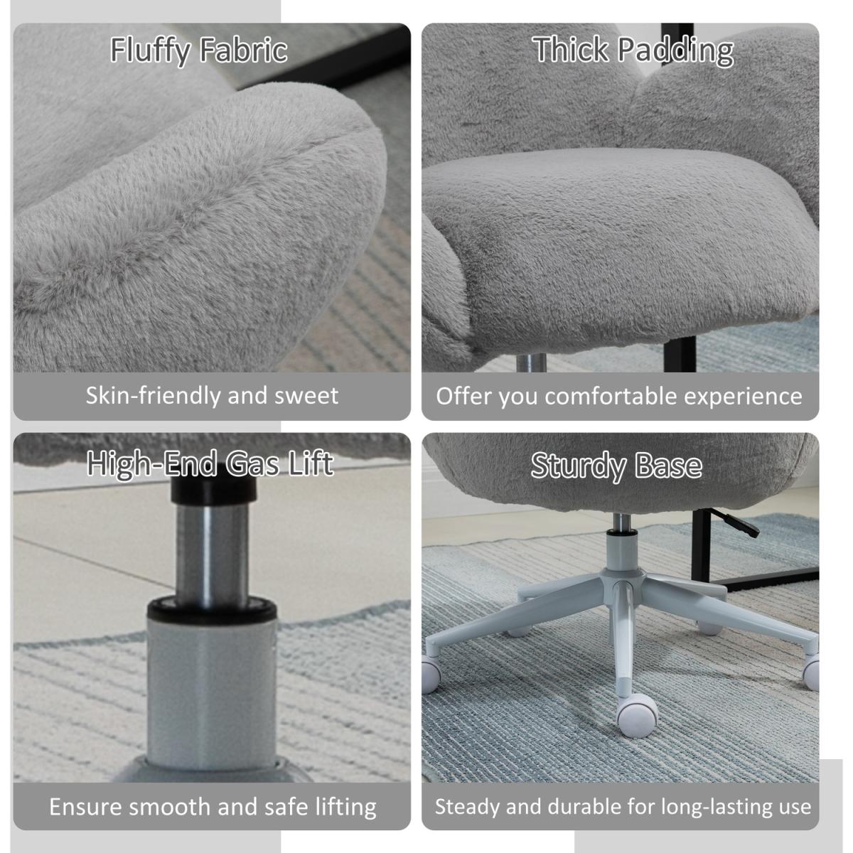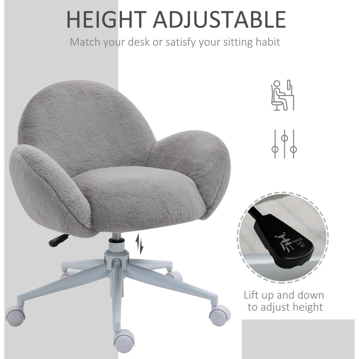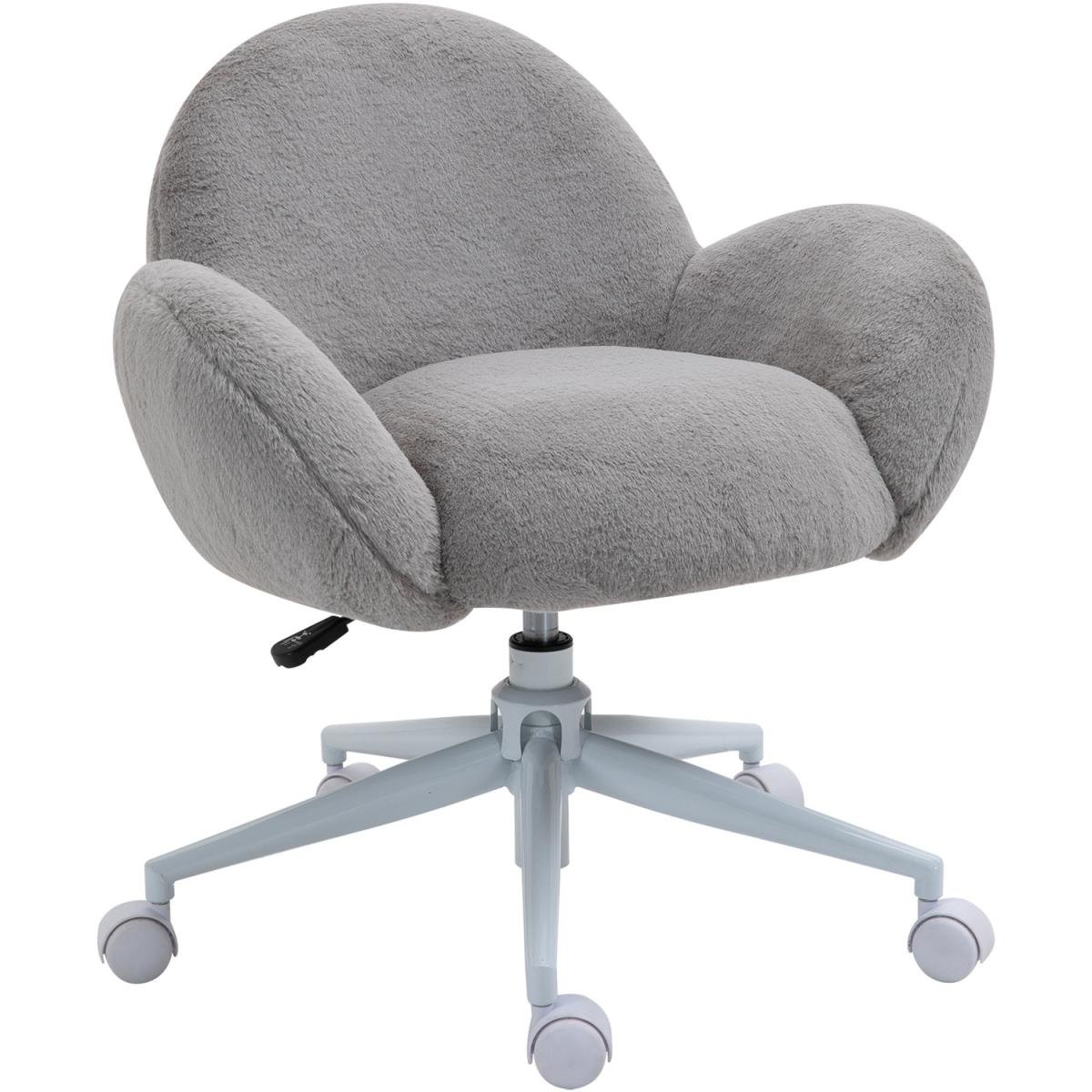 Fluffy Office Chair with Backrest Armrests for Bedroom Leisure - Grey, White