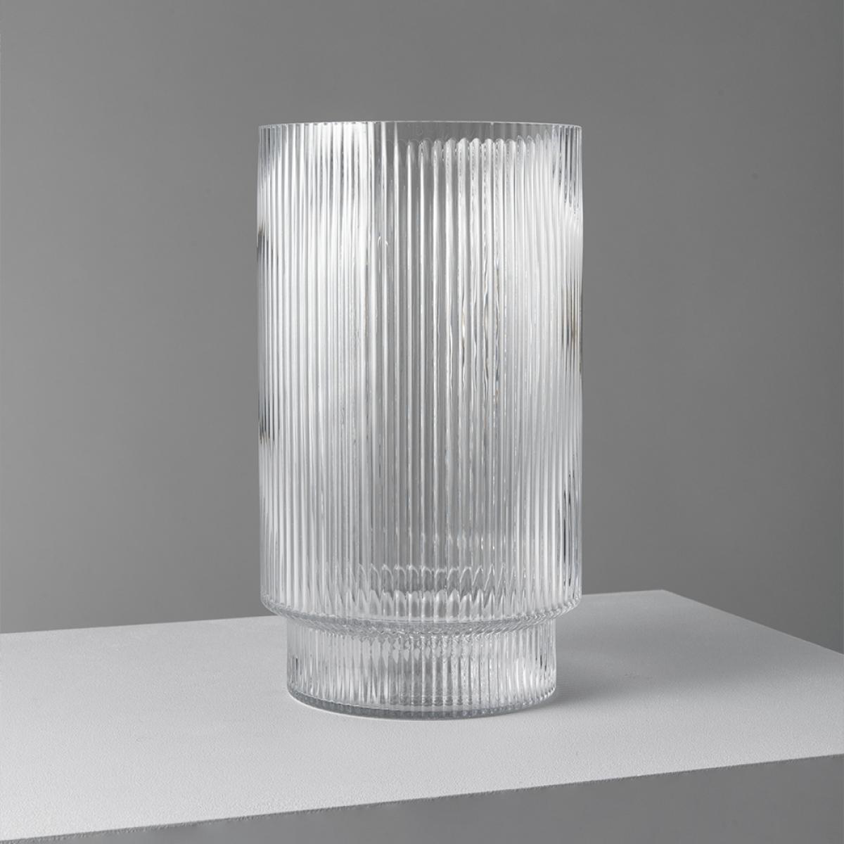 Brighten your space with our glass ribbed vases. Designed to refract and reflect light, these clear vessels create ever-changing visual effects, casting beautiful, ever changing, shadows and enhancing the beauty of any floral arrangement.