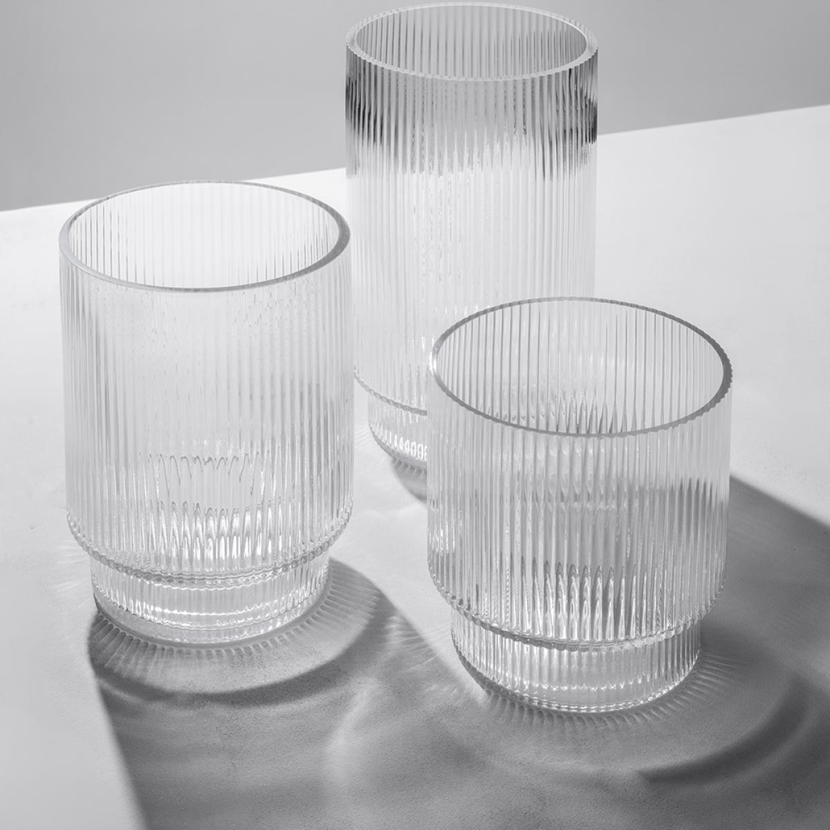 Brighten your space with our glass ribbed vases. Designed to refract and reflect light, these clear vessels create ever-changing visual effects, casting beautiful, ever changing, shadows and enhancing the beauty of any floral arrangement.