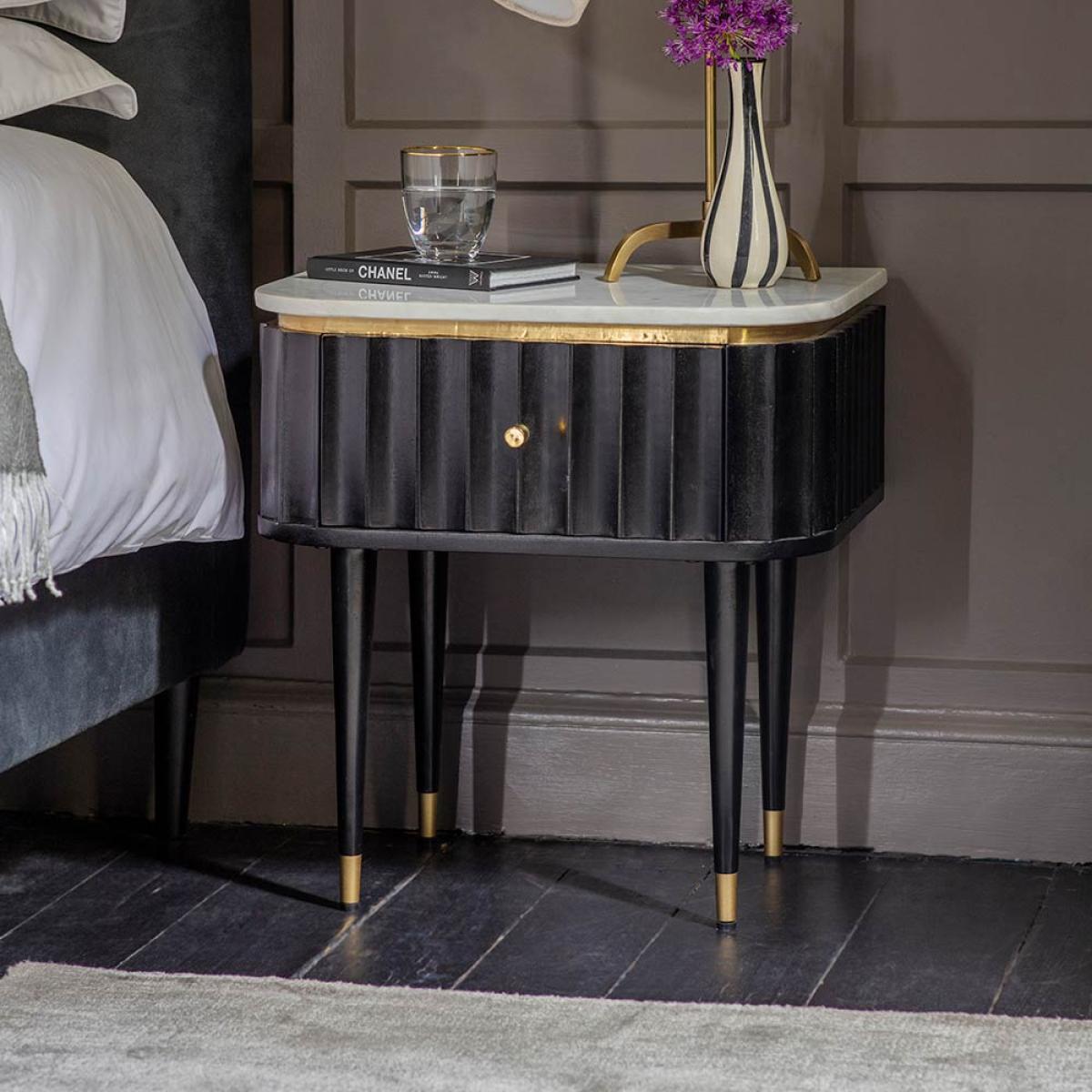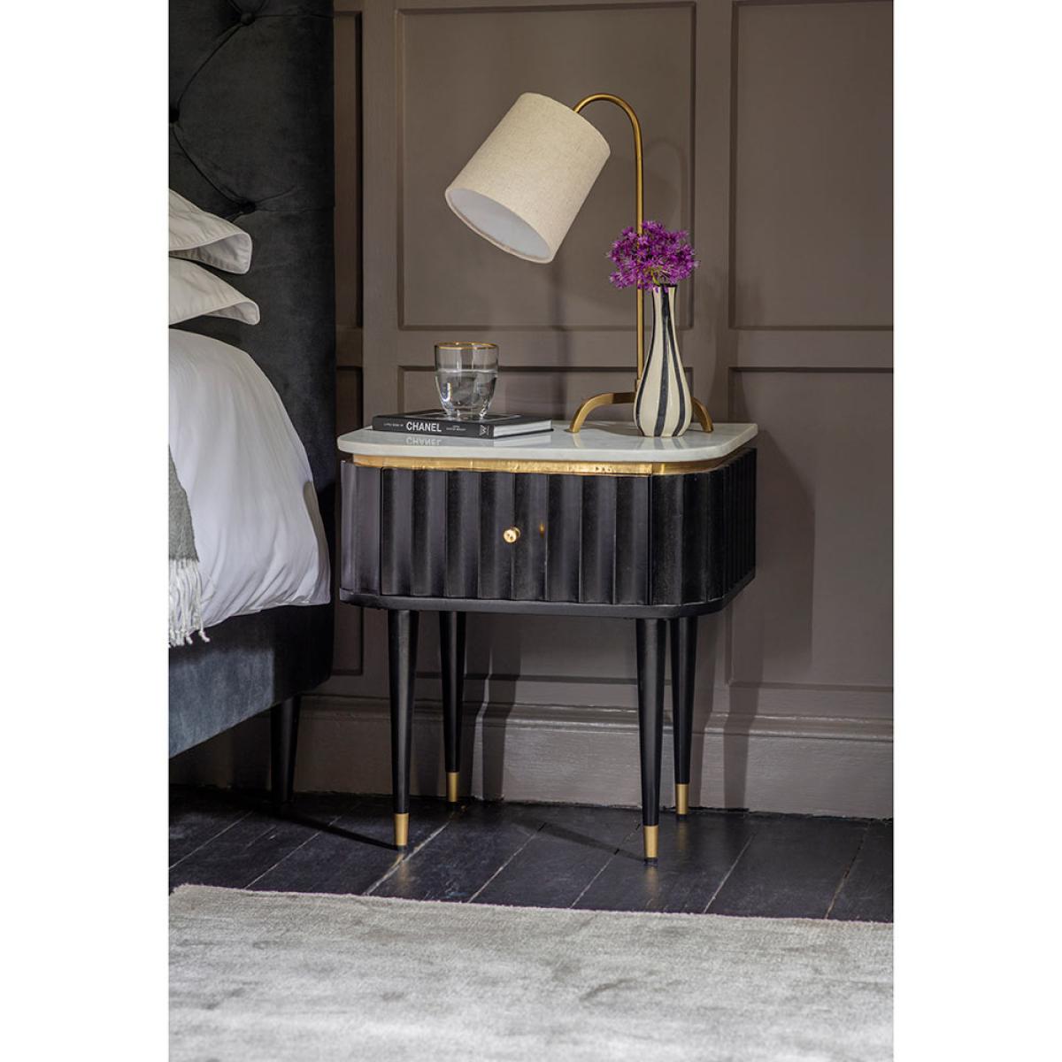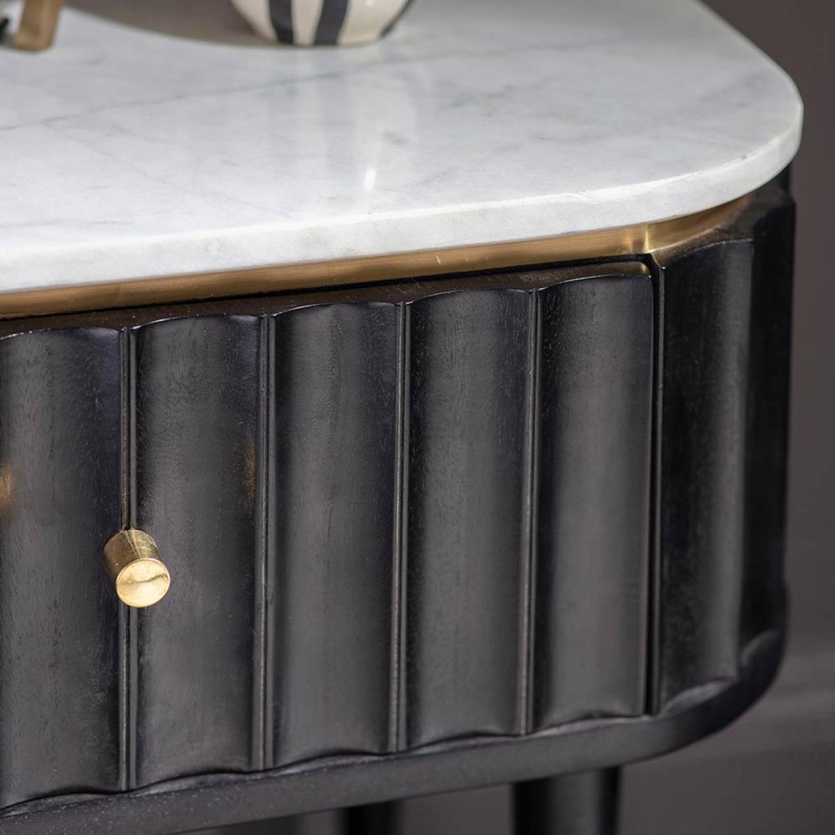 Flute Marble Bedside Drawer - Black