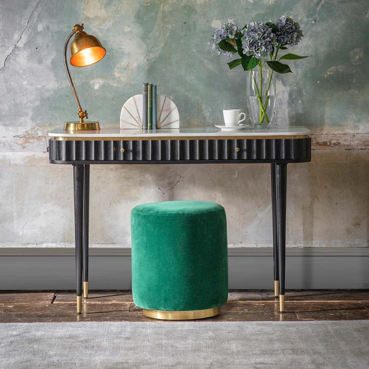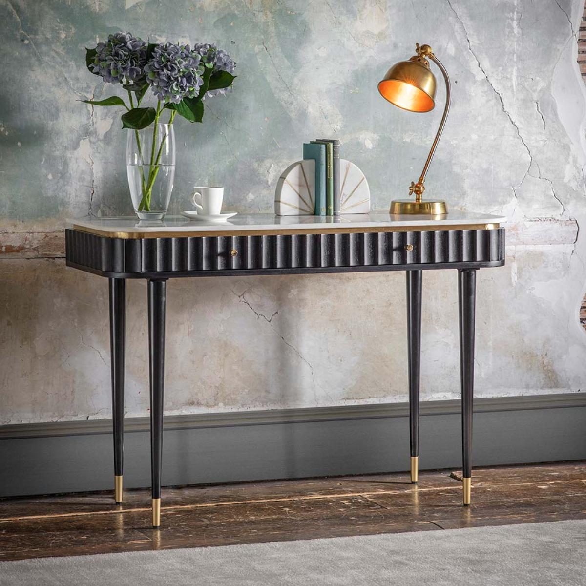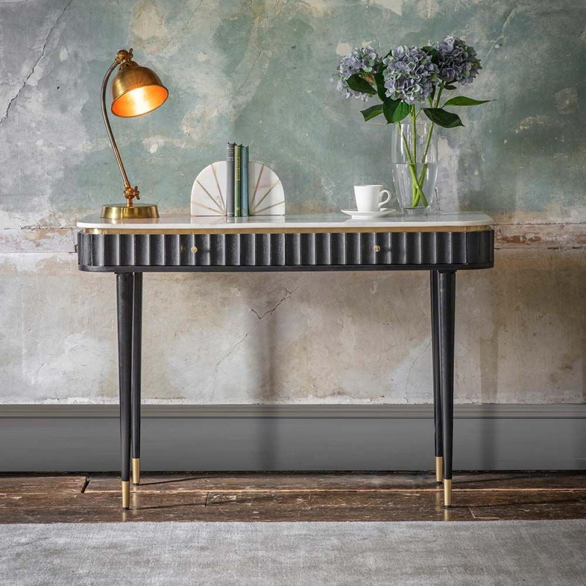 When you need an extra table for the hallway, landing, living area, bedroom or home office, our new Flute Marble Console Desk is just the thing. In black stained acacia wood with a sturdy on-trend white marble top, it features gently curved ends, brass cladded edging, brass plated handles and black legs with brass caps. Bringing together the Mid-Century Modern look with a Scandinavian feel, it’s functional, space-saving and stylish while complementing all interiors.