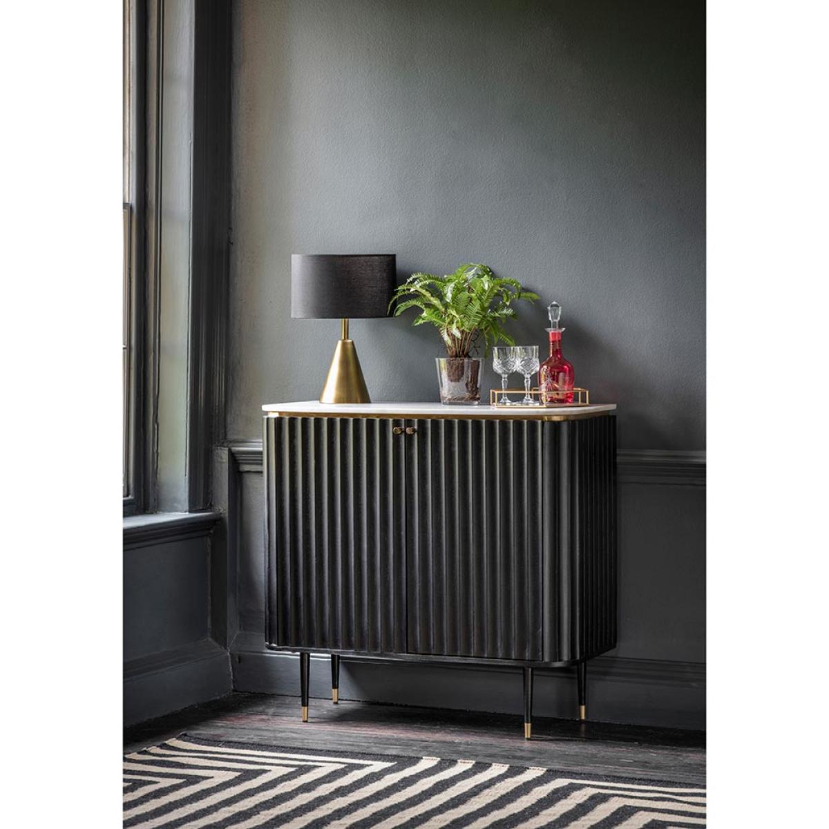 Flute Marble Drinks Cabinet - Black