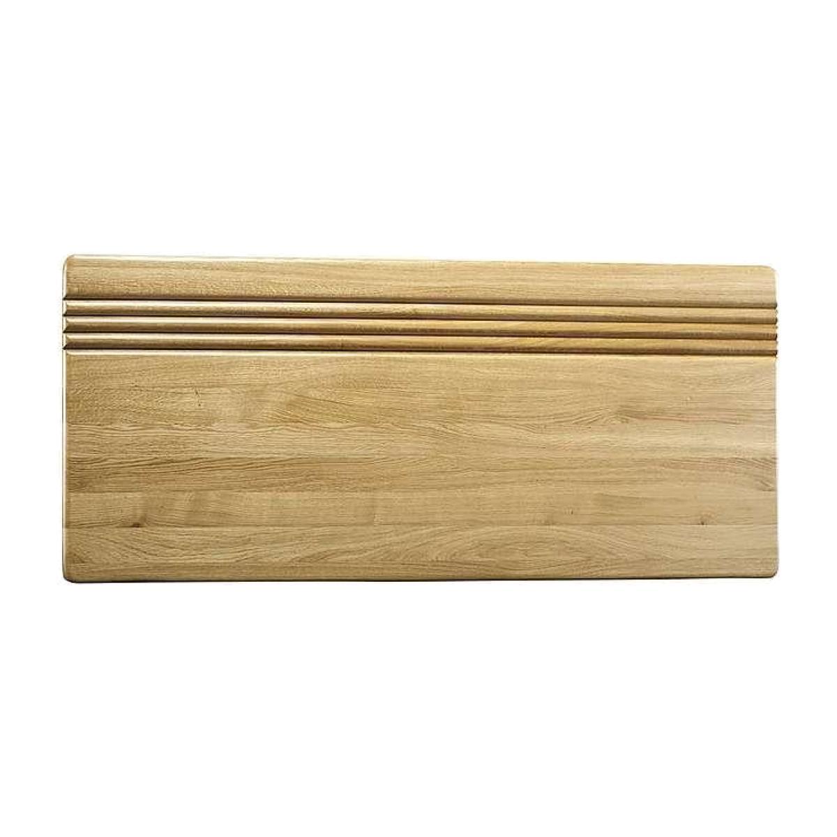 Unique and stylish wooden headboard. Solid wood, with beautiful lacquered oak veneers. Gently rounded corners. Horizontal fluting for a contemporary linear style. Lacquer finish shows off the natural beauty of the wood. Make a real design statement in your bedroom. Dimensions. Single dimensions: Width 90cm (35in) Depth 3cm (1in) Height 55cm (22in). Double dimensions: Width 135cm (53in)Depth 3cm (1in) Height 55cm (22in). King size dimensions: Width 150cm (59in)Depth 3cm (1in) Height 55cm (22in). Super King dimensions: Width 180cm (71in)Depth 3cm (1in) Height 55cm (22in).