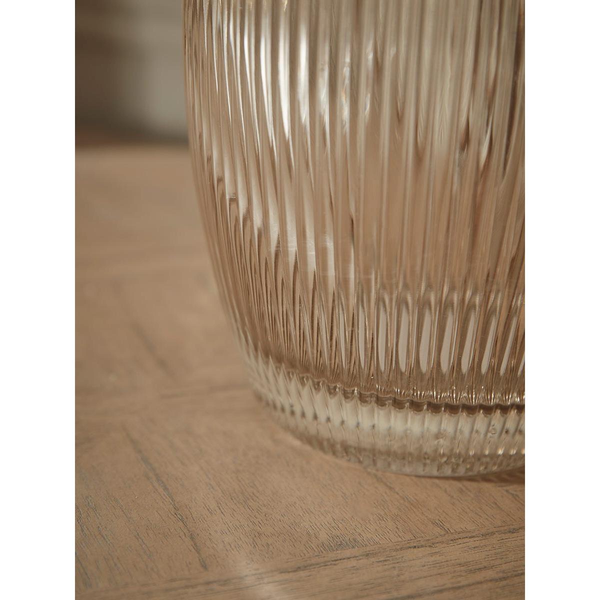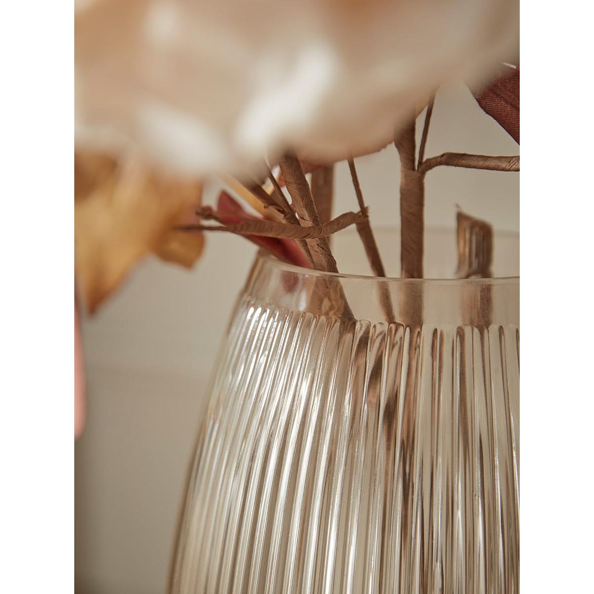 A refined silhouette combines wonderfully with a beautiful fluted effect in this vase.   An elegant amber tone graces this vase, creating a softness and delicacy to it for a feeling of serenity. Its tall oval shape makes it perfect for holding taller stems and bouquets.