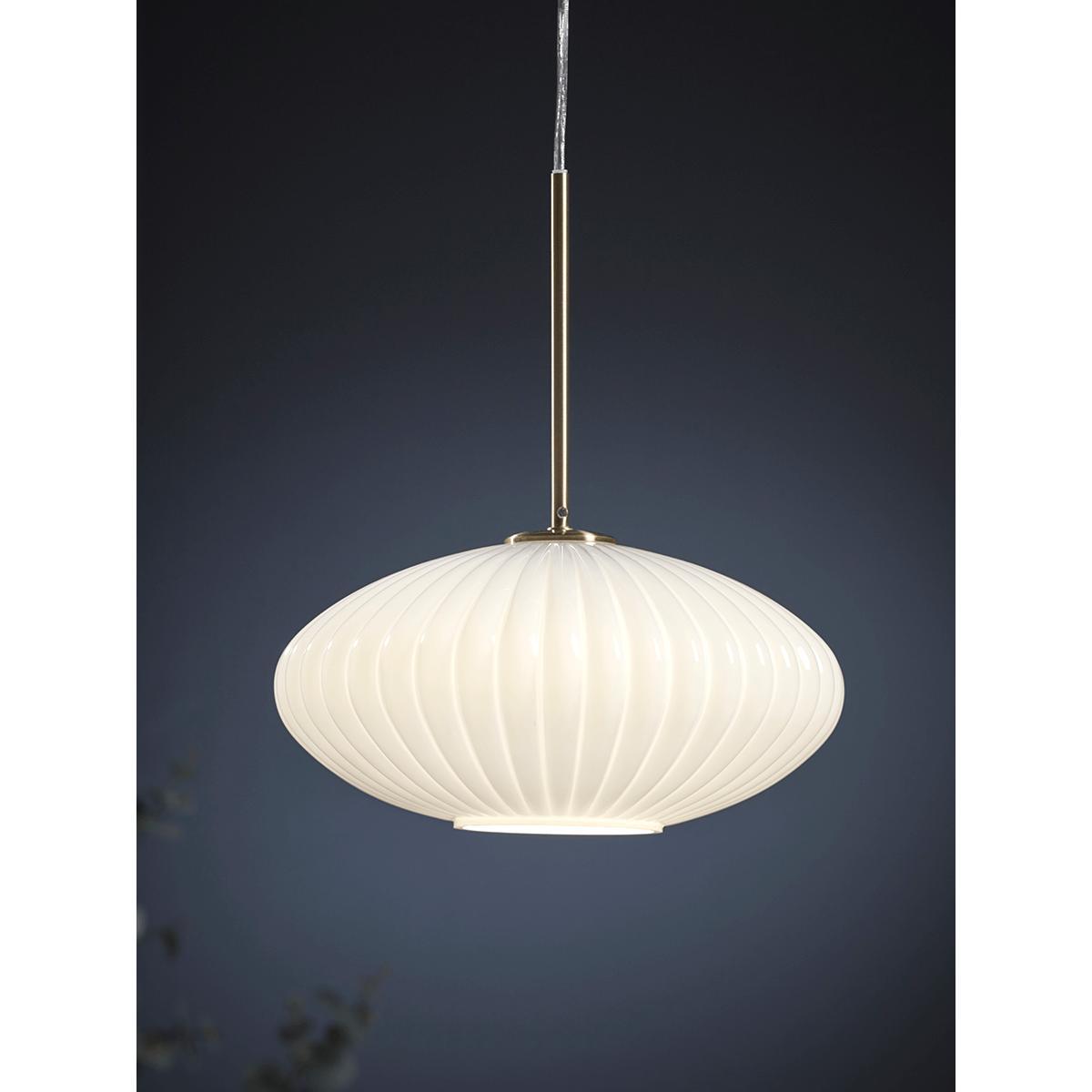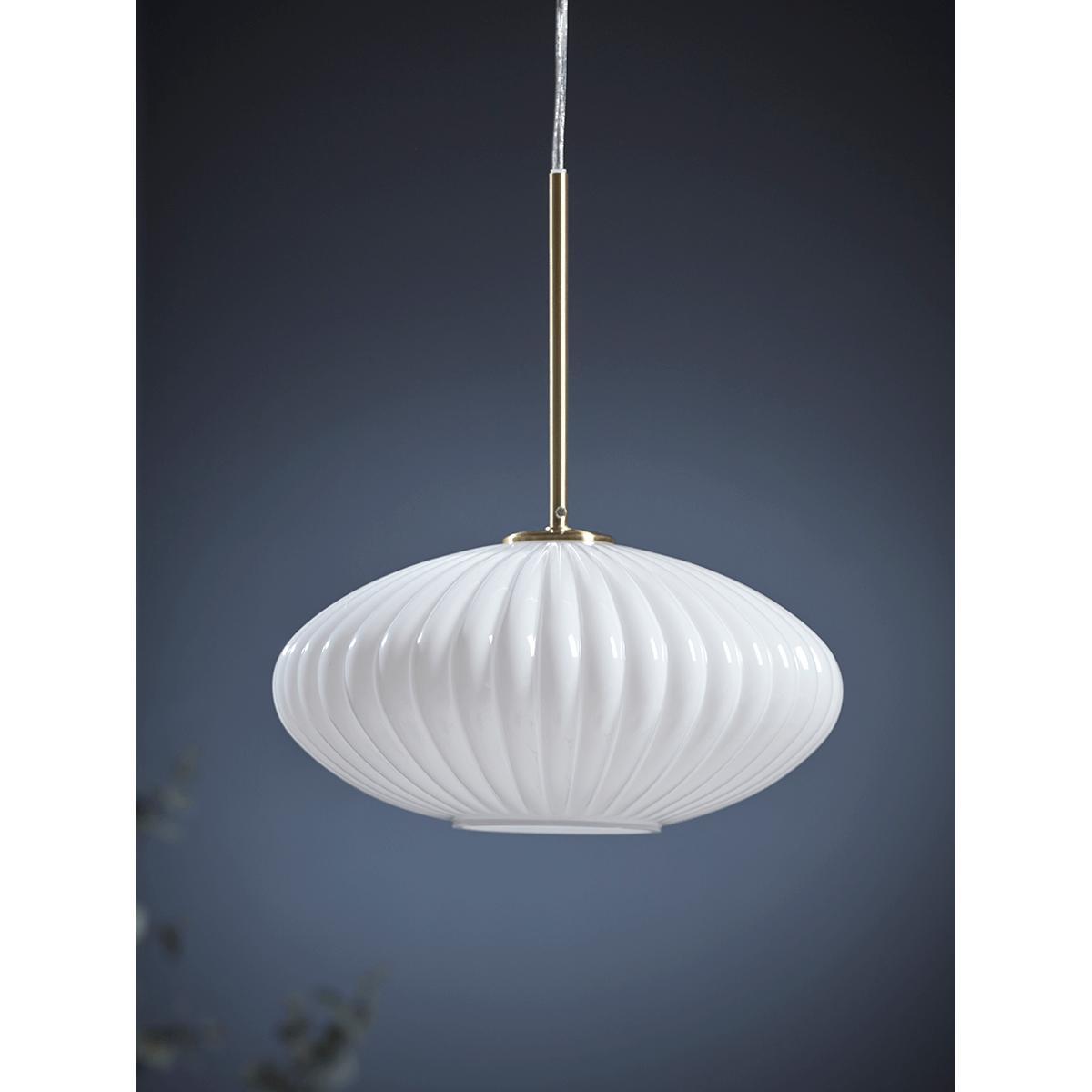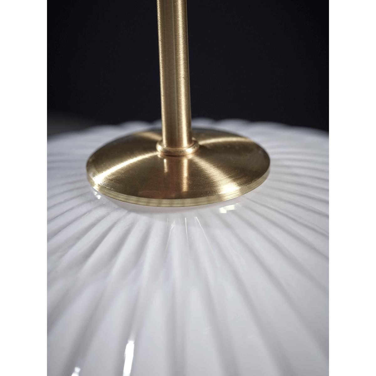 A distinctive fluted shade and feature slender gold stem deliver timeless Deco style whilst a milk-white finish diffuses the light for a soothing atmosphere in any room.