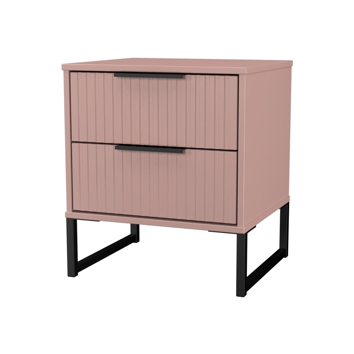 This compact 2 drawer bedside cabinet is practical and stylish. Perfect for any bedside or as a free standing storage unit. A new stand out range, named for the new deep cut "fluted" grove patten of the drawer and door fronts. Featuring black metal handles and black sleigh legs. A striking and individual range that is perfect for the modern home. All our furniture is made in the United Kingdom, to the highest quality using responsibly sourced materials. It is delivered direct to your location of choice by one of our two man delivery teams, and comes fully assembled (although items with legs will have those legs removed during transit to avoid damage).