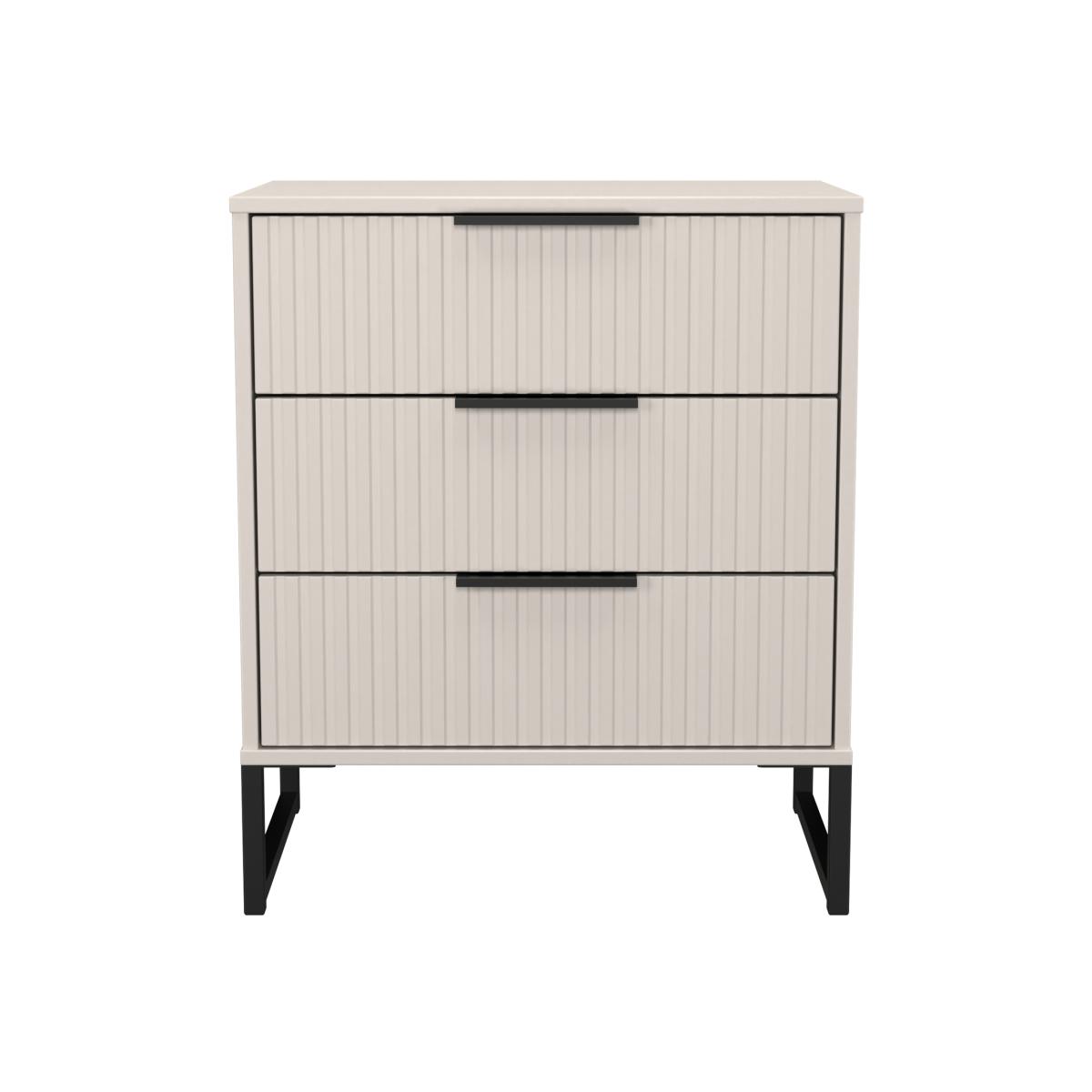 This 3 drawer bedside cabinet is wider than normal for added practicality. Perfect for any bedside or as a free standing storage unit. A new stand out range, named for the new deep cut "fluted" grove patten of the drawer and door fronts. Featuring black metal handles and black sleigh legs. A striking and individual range that is perfect for the modern home. All our furniture is made in the United Kingdom, to the highest quality using responsibly sourced materials. It is delivered direct to your location of choice by one of our two man delivery teams, and comes fully assembled (although items with legs will have those legs removed during transit to avoid damage).